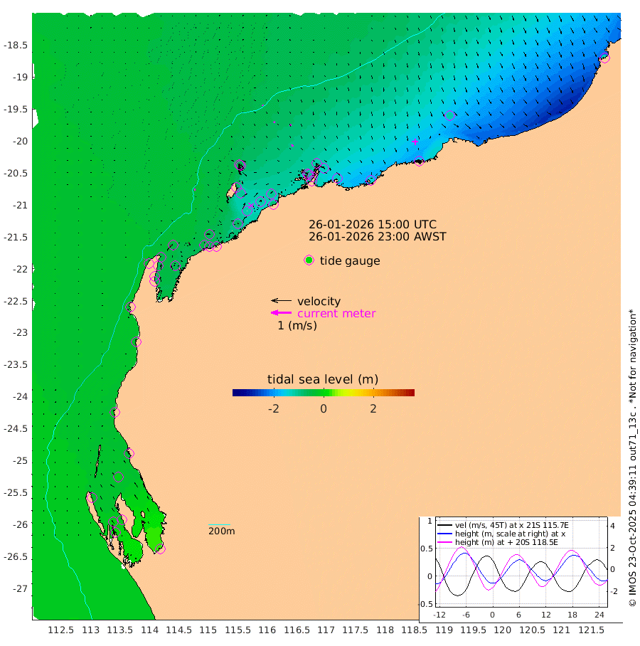 7cm/s 101T +12cm/s rms + 5cm/s -173T. NWSBAR 206m 1cm/s 26T +22cm/s rms + 10cm/s -148T. TAN100 109m 4cm/s 129T +11cm/s rms + 8cm/s -129T. PIL200 208m 8cm/s 153T +13cm/s rms + 7cm/s -137T. PIL100 105m 10cm/s 155T +12cm/s rms + 2cm/s -92T. PIL050 55m 1cm/s 80T +18cm/s rms + 4cm/s -149T. NRSNIN 61m 10cm/s 156T +6cm/s rms + 3cm/s 112T. NW Shelf M6 65m -26cm Withnell Point -12cm Denham -9cm Shark Bay (Inr Bn) -9cm Shark Bay 5cm Useless Loop 23cm Hamelin Pool -43cm Carnarvon -31cm Cape Cuvier -31cm Coral Bay -37cm Norwegian Bay -76cm Badjirrajirra -36cm Tantabiddi -56cm Point Murat -68cm Exmouth -79cm Learmonth -61cm Y Island -46cm North Muiron Island -55cm Roller -56cm Ashburton North -63cm Onslow (Beadon Creek) -58cm Thevenard Island -78cm Large Island -114cm North Sandy Island -83cm Barrow Island (Wapet Landing) -111cm Barrow Island (Tanker Mooring) -107cm Withnell Bay -83cm Trimouille Island -64cm North West Island -82cm Fortescue Road -109cm Steamboat Island -121cm Sholl Island -106cm Fairway Beacon -108cm Mawby Island -107cm Dampier (King Bay) -114cm Cape Legendre -124cm Hauy Island -132cm Port Walcott (Cape Lambert) -144cm Depuch Island -158cm Port Hedland -121cm Bedout Island -125cm Lagrange Bay