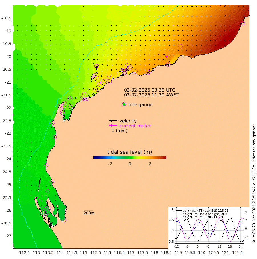 4cm/s -32T +12cm/s rms + 5cm/s -173T. NWSBAR 206m 4cm/s 46T +22cm/s rms + 10cm/s -148T. TAN100 109m 4cm/s 110T +11cm/s rms + 8cm/s -129T. PIL200 208m 7cm/s 107T +13cm/s rms + 7cm/s -137T. PIL100 105m 9cm/s 102T +12cm/s rms + 2cm/s -92T. PIL050 55m 5cm/s 43T +18cm/s rms + 4cm/s -149T. NRSNIN 61m 6cm/s 88T +6cm/s rms + 3cm/s 112T. NW Shelf M6 65m 0cm Withnell Point -20cm Denham -22cm Shark Bay (Inr Bn) -22cm Shark Bay -34cm Useless Loop -19cm Hamelin Pool 23cm Carnarvon 18cm Cape Cuvier 20cm Coral Bay 24cm Norwegian Bay 66cm Badjirrajirra 28cm Tantabiddi 46cm Point Murat 56cm Exmouth 71cm Learmonth 53cm Y Island 39cm North Muiron Island 47cm Roller 57cm Ashburton North 62cm Onslow (Beadon Creek) 58cm Thevenard Island 111cm Large Island 121cm North Sandy Island 89cm Barrow Island (Wapet Landing) 115cm Barrow Island (Tanker Mooring) 135cm Withnell Bay 92cm Trimouille Island 66cm North West Island 137cm Fortescue Road 129cm Steamboat Island 123cm Sholl Island 133cm Fairway Beacon 133cm Mawby Island 136cm Dampier (King Bay) 139cm Cape Legendre 151cm Hauy Island 172cm Port Walcott (Cape Lambert) 196cm Depuch Island 218cm Port Hedland 209cm Bedout Island 313cm Lagrange Bay