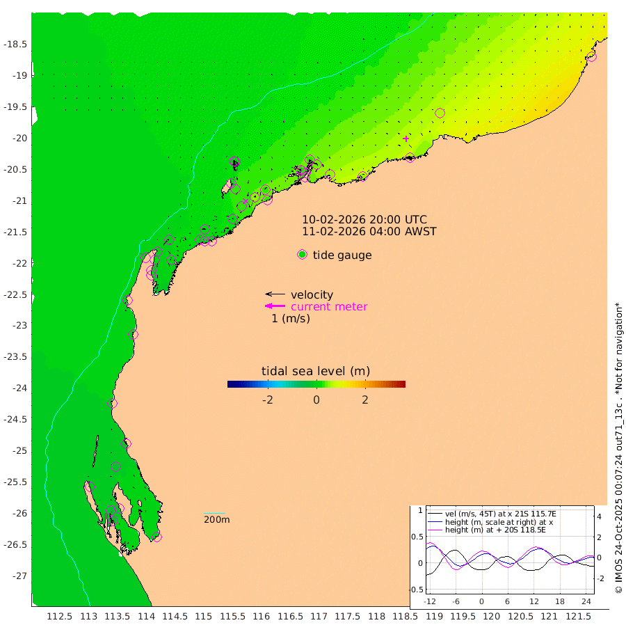 3cm/s -17T +12cm/s rms + 5cm/s -173T. NWSBAR 206m 2cm/s -154T +22cm/s rms + 10cm/s -148T. TAN100 109m 2cm/s 73T +11cm/s rms + 8cm/s -129T. PIL200 208m 0cm/s 52T +13cm/s rms + 7cm/s -137T. PIL100 105m 1cm/s -41T +12cm/s rms + 2cm/s -92T. PIL050 55m 2cm/s -142T +18cm/s rms + 4cm/s -149T. NRSNIN 61m 2cm/s 56T +6cm/s rms + 3cm/s 112T. NW Shelf M6 65m -20cm Withnell Point -25cm Denham -26cm Shark Bay (Inr Bn) -25cm Shark Bay -27cm Useless Loop -1cm Hamelin Pool -15cm Carnarvon -14cm Cape Cuvier -13cm Coral Bay -10cm Norwegian Bay 8cm Badjirrajirra -9cm Tantabiddi -1cm Point Murat 5cm Exmouth 9cm Learmonth 7cm Y Island -2cm North Muiron Island 4cm Roller 2cm Ashburton North 4cm Onslow (Beadon Creek) 3cm Thevenard Island 14cm Large Island 29cm North Sandy Island 14cm Barrow Island (Wapet Landing) 27cm Barrow Island (Tanker Mooring) 31cm Withnell Bay 9cm Trimouille Island 7cm North West Island 28cm Fortescue Road 32cm Steamboat Island 49cm Sholl Island 31cm Fairway Beacon 31cm Mawby Island 30cm Dampier (King Bay) 23cm Cape Legendre 42cm Hauy Island 45cm Port Walcott (Cape Lambert) 51cm Depuch Island 63cm Port Hedland 60cm Bedout Island 82cm Lagrange Bay