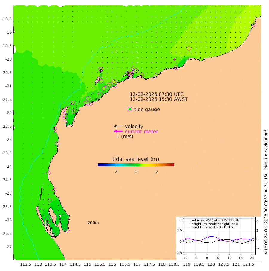 0cm/s 109T +12cm/s rms + 5cm/s -173T. NWSBAR 206m 3cm/s 35T +22cm/s rms + 10cm/s -148T. TAN100 109m 3cm/s 88T +11cm/s rms + 8cm/s -129T. PIL200 208m 4cm/s 112T +13cm/s rms + 7cm/s -137T. PIL100 105m 5cm/s 112T +12cm/s rms + 2cm/s -92T. PIL050 55m 4cm/s 42T +18cm/s rms + 4cm/s -149T. NRSNIN 61m 6cm/s 117T +6cm/s rms + 3cm/s 112T. NW Shelf M6 65m 27cm Withnell Point 22cm Denham 21cm Shark Bay (Inr Bn) 23cm Shark Bay 16cm Useless Loop -9cm Hamelin Pool 37cm Carnarvon 34cm Cape Cuvier 35cm Coral Bay 36cm Norwegian Bay 42cm Badjirrajirra 36cm Tantabiddi 38cm Point Murat 40cm Exmouth 37cm Learmonth 43cm Y Island 39cm North Muiron Island 42cm Roller 39cm Ashburton North 40cm Onslow (Beadon Creek) 41cm Thevenard Island 29cm Large Island 51cm North Sandy Island 43cm Barrow Island (Wapet Landing) 46cm Barrow Island (Tanker Mooring) 51cm Withnell Bay 47cm Trimouille Island 38cm North West Island 17cm Fortescue Road 57cm Steamboat Island 54cm Sholl Island 49cm Fairway Beacon 49cm Mawby Island 50cm Dampier (King Bay) 50cm Cape Legendre 48cm Hauy Island 53cm Port Walcott (Cape Lambert) 59cm Depuch Island 58cm Port Hedland 57cm Bedout Island 19cm Lagrange Bay