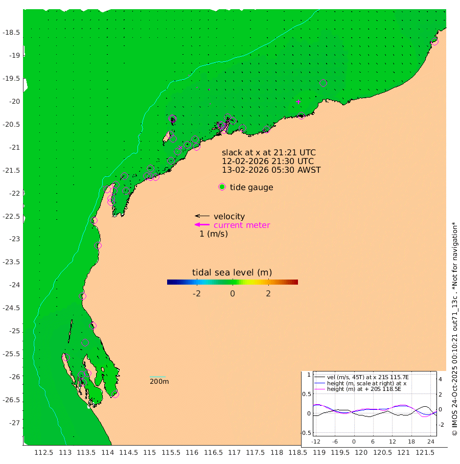 3cm/s 8T +12cm/s rms + 5cm/s -173T. NWSBAR 206m 1cm/s -166T +22cm/s rms + 10cm/s -148T. TAN100 109m 3cm/s 96T +11cm/s rms + 8cm/s -129T. PIL200 208m 3cm/s 142T +13cm/s rms + 7cm/s -137T. PIL100 105m 3cm/s 152T +12cm/s rms + 2cm/s -92T. PIL050 55m 1cm/s -159T +18cm/s rms + 4cm/s -149T. NRSNIN 61m 7cm/s 120T +6cm/s rms + 3cm/s 112T. NW Shelf M6 65m -31cm Withnell Point -37cm Denham -36cm Shark Bay (Inr Bn) -38cm Shark Bay -36cm Useless Loop 1cm Hamelin Pool -31cm Carnarvon -25cm Cape Cuvier -25cm Coral Bay -21cm Norwegian Bay -28cm Badjirrajirra -25cm Tantabiddi -27cm Point Murat -28cm Exmouth -27cm Learmonth -23cm Y Island -24cm North Muiron Island -22cm Roller -26cm Ashburton North -27cm Onslow (Beadon Creek) -27cm Thevenard Island -35cm Large Island -31cm North Sandy Island -29cm Barrow Island (Wapet Landing) -33cm Barrow Island (Tanker Mooring) -29cm Withnell Bay -33cm Trimouille Island -29cm North West Island -24cm Fortescue Road -32cm Steamboat Island -17cm Sholl Island -28cm Fairway Beacon -27cm Mawby Island -30cm Dampier (King Bay) -31cm Cape Legendre -26cm Hauy Island -32cm Port Walcott (Cape Lambert) -37cm Depuch Island -33cm Port Hedland -35cm Bedout Island 6cm Lagrange Bay