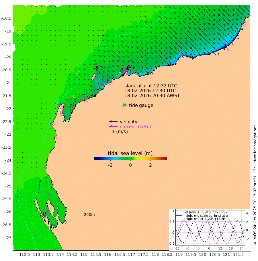 11cm/s 73T +12cm/s rms + 5cm/s -173T. NWSBAR 206m 10cm/s 41T +22cm/s rms + 10cm/s -148T. TAN100 109m 17cm/s 111T +11cm/s rms + 8cm/s -129T. PIL200 208m 28cm/s 130T +13cm/s rms + 7cm/s -137T. PIL100 105m 35cm/s 133T +12cm/s rms + 2cm/s -92T. PIL050 55m 9cm/s 46T +18cm/s rms + 4cm/s -149T. NRSNIN 61m 35cm/s 126T +6cm/s rms + 3cm/s 112T. NW Shelf M6 65m 5cm Withnell Point -5cm Denham -5cm Shark Bay (Inr Bn) 1cm Shark Bay 0cm Useless Loop 2cm Hamelin Pool 10cm Carnarvon 23cm Cape Cuvier 24cm Coral Bay 21cm Norwegian Bay -17cm Badjirrajirra 20cm Tantabiddi -1cm Point Murat -12cm Exmouth -25cm Learmonth 0cm Y Island 11cm North Muiron Island 7cm Roller 7cm Ashburton North 1cm Onslow (Beadon Creek) 6cm Thevenard Island -65cm Large Island -57cm North Sandy Island -16cm Barrow Island (Wapet Landing) -55cm Barrow Island (Tanker Mooring) -21cm Withnell Bay -28cm Trimouille Island 0cm North West Island -66cm Fortescue Road -20cm Steamboat Island -57cm Sholl Island -21cm Fairway Beacon -17cm Mawby Island -21cm Dampier (King Bay) -11cm Cape Legendre -42cm Hauy Island -44cm Port Walcott (Cape Lambert) -62cm Depuch Island -59cm Port Hedland -30cm Bedout Island -16cm Lagrange Bay