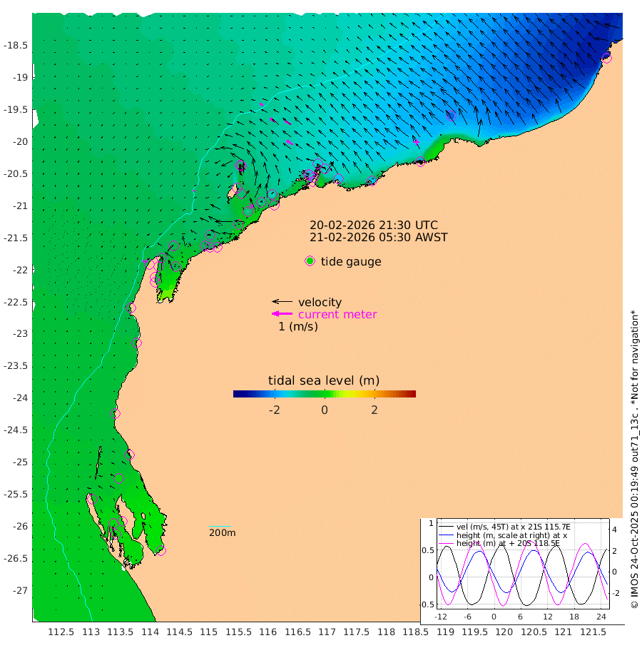 8cm/s -133T +12cm/s rms + 5cm/s -173T. NWSBAR 206m 11cm/s -140T +22cm/s rms + 10cm/s -148T. TAN100 109m 18cm/s -71T +11cm/s rms + 8cm/s -129T. PIL200 208m 30cm/s -56T +13cm/s rms + 7cm/s -137T. PIL100 105m 37cm/s -55T +12cm/s rms + 2cm/s -92T. PIL050 55m 11cm/s -134T +18cm/s rms + 4cm/s -149T. NRSNIN 61m 33cm/s -60T +6cm/s rms + 3cm/s 112T. NW Shelf M6 65m -12cm Withnell Point 5cm Denham 4cm Shark Bay (Inr Bn) 2cm Shark Bay 8cm Useless Loop 7cm Hamelin Pool -34cm Carnarvon -40cm Cape Cuvier -44cm Coral Bay -44cm Norwegian Bay -62cm Badjirrajirra -50cm Tantabiddi -53cm Point Murat -56cm Exmouth -60cm Learmonth -66cm Y Island -57cm North Muiron Island -65cm Roller -71cm Ashburton North -73cm Onslow (Beadon Creek) -73cm Thevenard Island -55cm Large Island -92cm North Sandy Island -88cm Barrow Island (Wapet Landing) -84cm Barrow Island (Tanker Mooring) -136cm Withnell Bay -81cm Trimouille Island -75cm North West Island -77cm Fortescue Road -125cm Steamboat Island -98cm Sholl Island -131cm Fairway Beacon -136cm Mawby Island -136cm Dampier (King Bay) -141cm Cape Legendre -128cm Hauy Island -158cm Port Walcott (Cape Lambert) -167cm Depuch Island -198cm Port Hedland -226cm Bedout Island -282cm Lagrange Bay