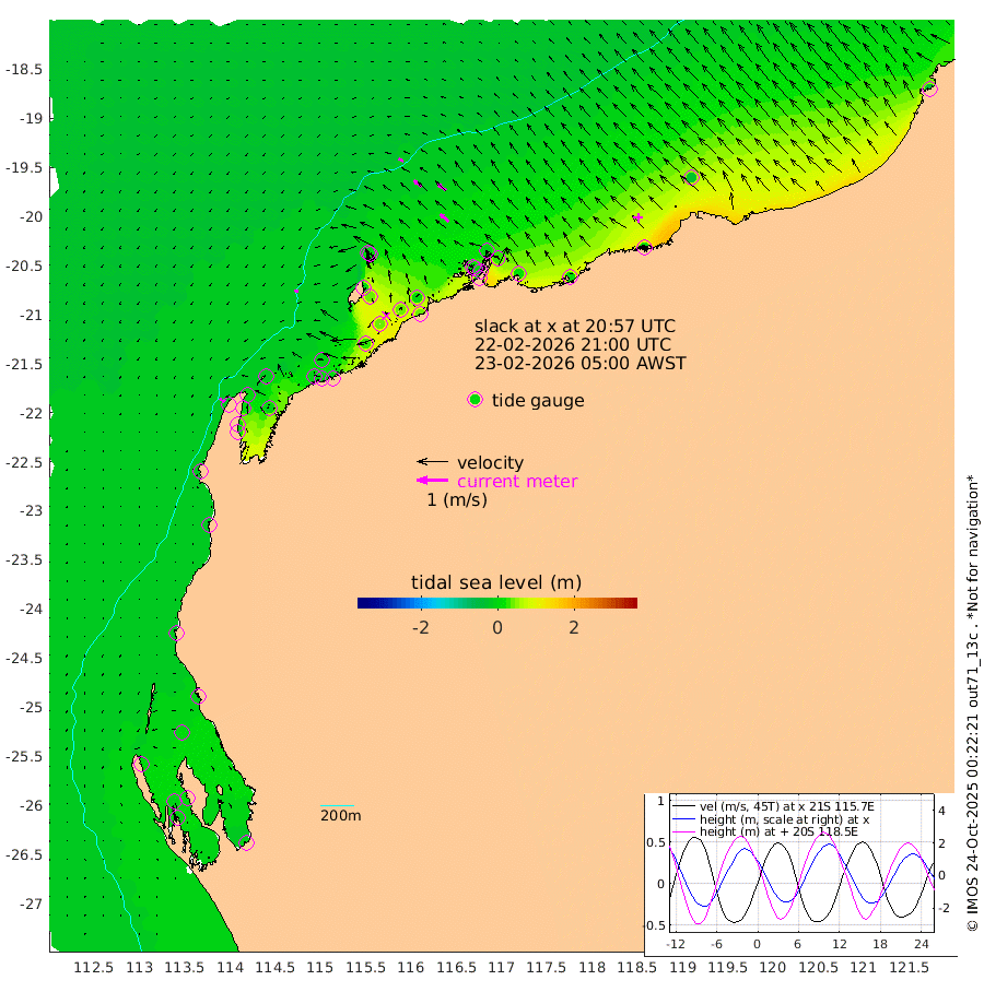 11cm/s -98T +12cm/s rms + 5cm/s -173T. NWSBAR 206m 10cm/s -141T +22cm/s rms + 10cm/s -148T. TAN100 109m 17cm/s -70T +11cm/s rms + 8cm/s -129T. PIL200 208m 30cm/s -53T +13cm/s rms + 7cm/s -137T. PIL100 105m 36cm/s -49T +12cm/s rms + 2cm/s -92T. PIL050 55m 10cm/s -132T +18cm/s rms + 4cm/s -149T. NRSNIN 61m 34cm/s -51T +6cm/s rms + 3cm/s 112T. NW Shelf M6 65m 1cm Withnell Point 3cm Denham -1cm Shark Bay (Inr Bn) 1cm Shark Bay -7cm Useless Loop -11cm Hamelin Pool -1cm Carnarvon -16cm Cape Cuvier -19cm Coral Bay -14cm Norwegian Bay 16cm Badjirrajirra -17cm Tantabiddi 2cm Point Murat 11cm Exmouth 17cm Learmonth -2cm Y Island -11cm North Muiron Island -7cm Roller -10cm Ashburton North -5cm Onslow (Beadon Creek) -9cm Thevenard Island 32cm Large Island 38cm North Sandy Island 5cm Barrow Island (Wapet Landing) 41cm Barrow Island (Tanker Mooring) -2cm Withnell Bay 5cm Trimouille Island -5cm North West Island 34cm Fortescue Road 4cm Steamboat Island 37cm Sholl Island 1cm Fairway Beacon -1cm Mawby Island -2cm Dampier (King Bay) -3cm Cape Legendre 23cm Hauy Island 11cm Port Walcott (Cape Lambert) 19cm Depuch Island 13cm Port Hedland -27cm Bedout Island -34cm Lagrange Bay