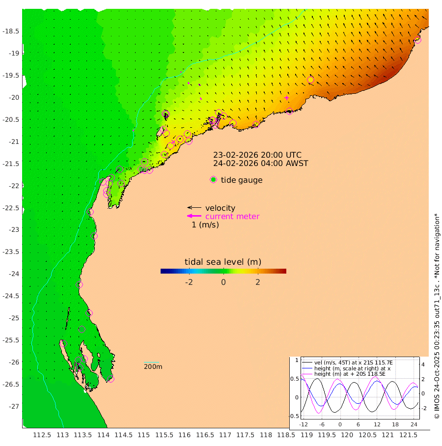 8cm/s -69T +12cm/s rms + 5cm/s -173T. NWSBAR 206m 5cm/s -145T +22cm/s rms + 10cm/s -148T. TAN100 109m 6cm/s -60T +11cm/s rms + 8cm/s -129T. PIL200 208m 13cm/s -45T +13cm/s rms + 7cm/s -137T. PIL100 105m 17cm/s -40T +12cm/s rms + 2cm/s -92T. PIL050 55m 5cm/s -133T +18cm/s rms + 4cm/s -149T. NRSNIN 61m 16cm/s -43T +6cm/s rms + 3cm/s 112T. NW Shelf M6 65m -2cm Withnell Point -13cm Denham -15cm Shark Bay (Inr Bn) -13cm Shark Bay -25cm Useless Loop -14cm Hamelin Pool 11cm Carnarvon 0cm Cape Cuvier 0cm Coral Bay 6cm Norwegian Bay 56cm Badjirrajirra 8cm Tantabiddi 32cm Point Murat 46cm Exmouth 57cm Learmonth 38cm Y Island 19cm North Muiron Island 30cm Roller 31cm Ashburton North 39cm Onslow (Beadon Creek) 34cm Thevenard Island 61cm Large Island 104cm North Sandy Island 63cm Barrow Island (Wapet Landing) 102cm Barrow Island (Tanker Mooring) 90cm Withnell Bay 61cm Trimouille Island 40cm North West Island 77cm Fortescue Road 89cm Steamboat Island 120cm Sholl Island 91cm Fairway Beacon 91cm Mawby Island 91cm Dampier (King Bay) 91cm Cape Legendre 115cm Hauy Island 123cm Port Walcott (Cape Lambert) 130cm Depuch Island 156cm Port Hedland 131cm Bedout Island 127cm Lagrange Bay