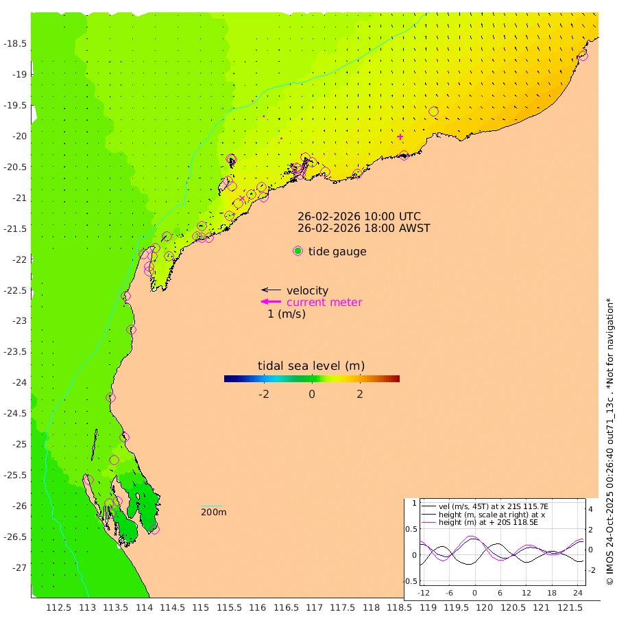 3cm/s -92T +12cm/s rms + 5cm/s -173T. NWSBAR 206m 2cm/s -137T +22cm/s rms + 10cm/s -148T. TAN100 109m 4cm/s -63T +11cm/s rms + 8cm/s -129T. PIL200 208m 8cm/s -29T +13cm/s rms + 7cm/s -137T. PIL100 105m 8cm/s -17T +12cm/s rms + 2cm/s -92T. PIL050 55m 2cm/s -112T +18cm/s rms + 4cm/s -149T. NRSNIN 61m 9cm/s -7T +6cm/s rms + 3cm/s 112T. NW Shelf M6 65m 45cm Withnell Point 49cm Denham 46cm Shark Bay (Inr Bn) 49cm Shark Bay 45cm Useless Loop -6cm Hamelin Pool 53cm Carnarvon 38cm Cape Cuvier 39cm Coral Bay 42cm Norwegian Bay 72cm Badjirrajirra 41cm Tantabiddi 57cm Point Murat 65cm Exmouth 66cm Learmonth 60cm Y Island 48cm North Muiron Island 51cm Roller 54cm Ashburton North 60cm Onslow (Beadon Creek) 56cm Thevenard Island 65cm Large Island 82cm North Sandy Island 71cm Barrow Island (Wapet Landing) 89cm Barrow Island (Tanker Mooring) 79cm Withnell Bay 61cm Trimouille Island 57cm North West Island 74cm Fortescue Road 80cm Steamboat Island 78cm Sholl Island 79cm Fairway Beacon 80cm Mawby Island 80cm Dampier (King Bay) 90cm Cape Legendre 87cm Hauy Island 93cm Port Walcott (Cape Lambert) 88cm Depuch Island 104cm Port Hedland 87cm Bedout Island 106cm Lagrange Bay