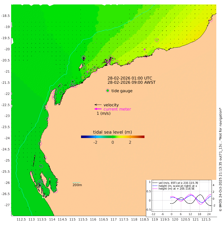 3cm/s -31T +12cm/s rms + 5cm/s -173T. NWSBAR 206m 2cm/s 53T +22cm/s rms + 10cm/s -148T. TAN100 109m 1cm/s 138T +11cm/s rms + 8cm/s -129T. PIL200 208m 3cm/s 120T +13cm/s rms + 7cm/s -137T. PIL100 105m 3cm/s 111T +12cm/s rms + 2cm/s -92T. PIL050 55m 3cm/s 44T +18cm/s rms + 4cm/s -149T. NRSNIN 61m 1cm/s 147T +6cm/s rms + 3cm/s 112T. NW Shelf M6 65m -10cm Withnell Point -27cm Denham -28cm Shark Bay (Inr Bn) -27cm Shark Bay -37cm Useless Loop -15cm Hamelin Pool 0cm Carnarvon -1cm Cape Cuvier -1cm Coral Bay 2cm Norwegian Bay 11cm Badjirrajirra 2cm Tantabiddi 6cm Point Murat 9cm Exmouth 13cm Learmonth 7cm Y Island 3cm North Muiron Island 6cm Roller 10cm Ashburton North 12cm Onslow (Beadon Creek) 11cm Thevenard Island 34cm Large Island 31cm North Sandy Island 20cm Barrow Island (Wapet Landing) 28cm Barrow Island (Tanker Mooring) 37cm Withnell Bay 24cm Trimouille Island 10cm North West Island 51cm Fortescue Road 29cm Steamboat Island 26cm Sholl Island 36cm Fairway Beacon 34cm Mawby Island 37cm Dampier (King Bay) 44cm Cape Legendre 45cm Hauy Island 48cm Port Walcott (Cape Lambert) 58cm Depuch Island 62cm Port Hedland 56cm Bedout Island 132cm Lagrange Bay