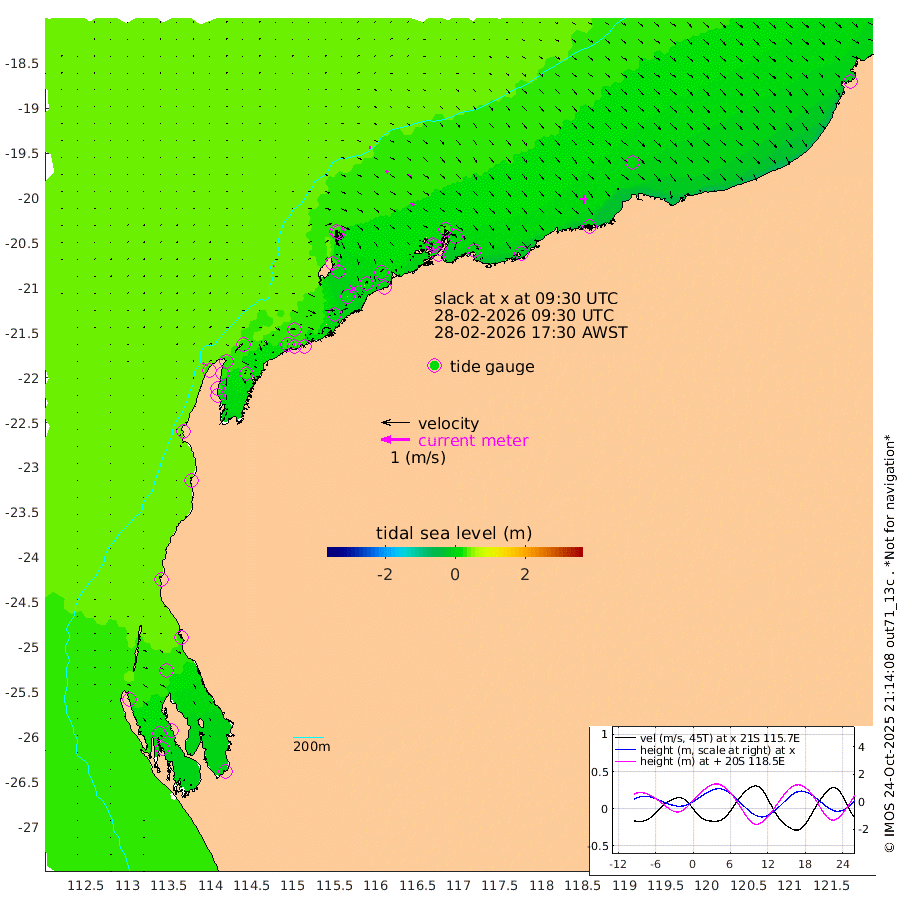 4cm/s 77T +12cm/s rms + 5cm/s -173T. NWSBAR 206m 5cm/s 41T +22cm/s rms + 10cm/s -148T. TAN100 109m 7cm/s 105T +11cm/s rms + 8cm/s -129T. PIL200 208m 11cm/s 123T +13cm/s rms + 7cm/s -137T. PIL100 105m 14cm/s 127T +12cm/s rms + 2cm/s -92T. PIL050 55m 5cm/s 44T +18cm/s rms + 4cm/s -149T. NRSNIN 61m 15cm/s 122T +6cm/s rms + 3cm/s 112T. NW Shelf M6 65m 25cm Withnell Point 20cm Denham 18cm Shark Bay (Inr Bn) 24cm Shark Bay 19cm Useless Loop -6cm Hamelin Pool 33cm Carnarvon 36cm Cape Cuvier 37cm Coral Bay 37cm Norwegian Bay 26cm Badjirrajirra 33cm Tantabiddi 28cm Point Murat 26cm Exmouth 20cm Learmonth 30cm Y Island 31cm North Muiron Island 30cm Roller 30cm Ashburton North 28cm Onslow (Beadon Creek) 31cm Thevenard Island 10cm Large Island 9cm North Sandy Island 23cm Barrow Island (Wapet Landing) 9cm Barrow Island (Tanker Mooring) 17cm Withnell Bay 14cm Trimouille Island 25cm North West Island 5cm Fortescue Road 13cm Steamboat Island 11cm Sholl Island 16cm Fairway Beacon 20cm Mawby Island 18cm Dampier (King Bay) 23cm Cape Legendre 5cm Hauy Island 8cm Port Walcott (Cape Lambert) -16cm Depuch Island -1cm Port Hedland 3cm Bedout Island 12cm Lagrange Bay