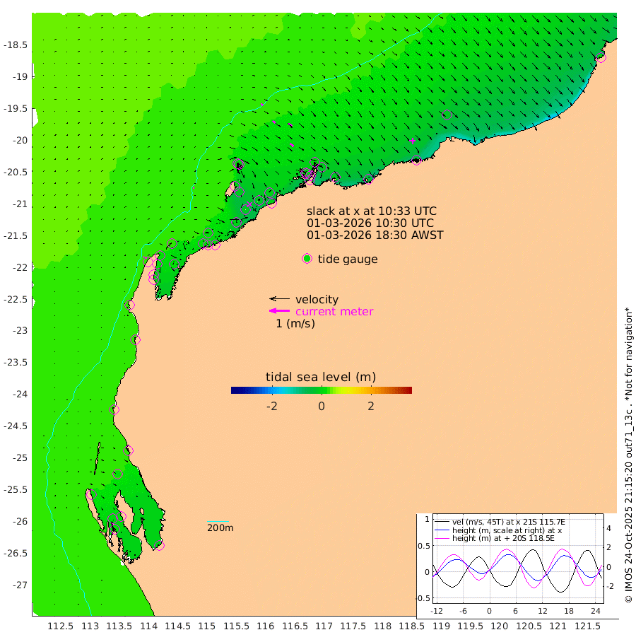 7cm/s 74T +12cm/s rms + 5cm/s -173T. NWSBAR 206m 6cm/s 42T +22cm/s rms + 10cm/s -148T. TAN100 109m 10cm/s 108T +11cm/s rms + 8cm/s -129T. PIL200 208m 17cm/s 127T +13cm/s rms + 7cm/s -137T. PIL100 105m 22cm/s 130T +12cm/s rms + 2cm/s -92T. PIL050 55m 7cm/s 46T +18cm/s rms + 4cm/s -149T. NRSNIN 61m 21cm/s 127T +6cm/s rms + 3cm/s 112T. NW Shelf M6 65m 18cm Withnell Point 12cm Denham 10cm Shark Bay (Inr Bn) 16cm Shark Bay 13cm Useless Loop -3cm Hamelin Pool 25cm Carnarvon 32cm Cape Cuvier 32cm Coral Bay 32cm Norwegian Bay 9cm Badjirrajirra 28cm Tantabiddi 17cm Point Murat 11cm Exmouth 2cm Learmonth 18cm Y Island 23cm North Muiron Island 21cm Roller 21cm Ashburton North 16cm Onslow (Beadon Creek) 21cm Thevenard Island -5cm Large Island -18cm North Sandy Island 7cm Barrow Island (Wapet Landing) -17cm Barrow Island (Tanker Mooring) -1cm Withnell Bay -2cm Trimouille Island 13cm North West Island -7cm Fortescue Road -10cm Steamboat Island -17cm Sholl Island -2cm Fairway Beacon 1cm Mawby Island 0cm Dampier (King Bay) 6cm Cape Legendre -18cm Hauy Island -16cm Port Walcott (Cape Lambert) -43cm Depuch Island -30cm Port Hedland -16cm Bedout Island 22cm Lagrange Bay