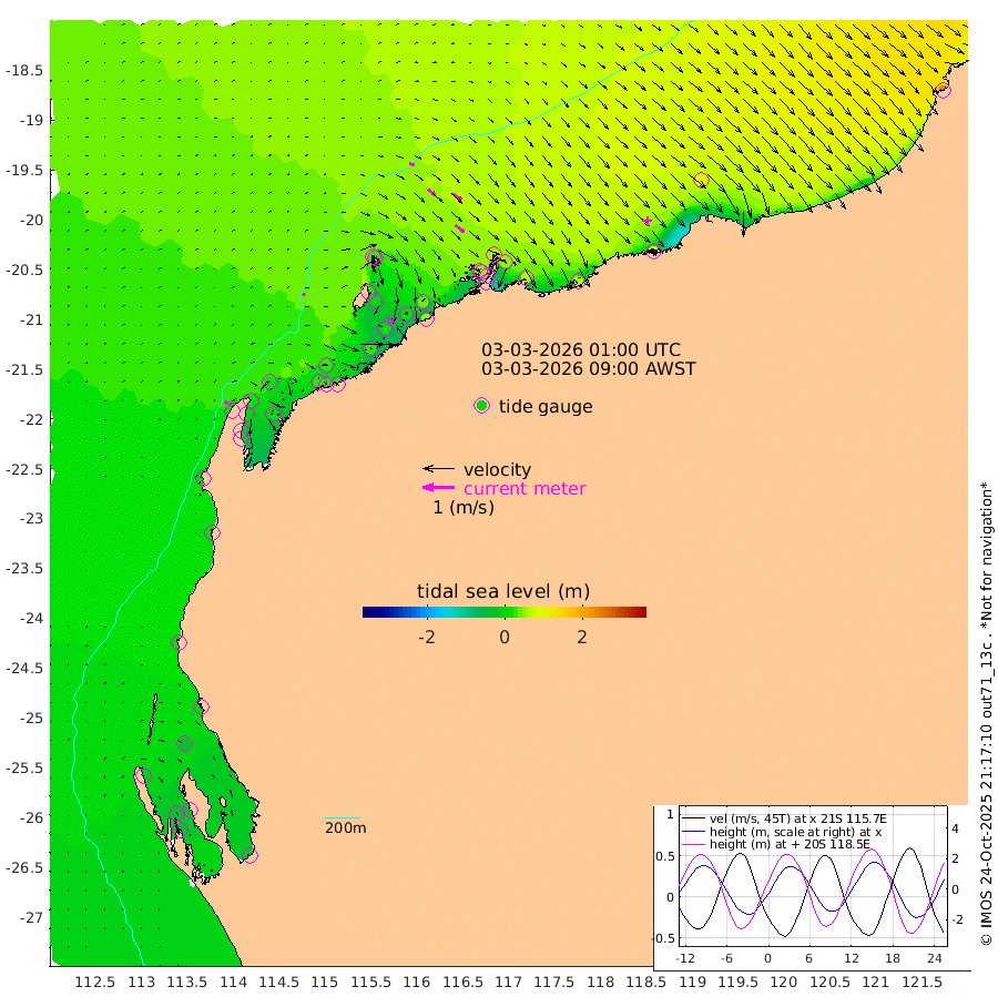 9cm/s 54T +12cm/s rms + 5cm/s -173T. NWSBAR 206m 10cm/s 45T +22cm/s rms + 10cm/s -148T. TAN100 109m 17cm/s 110T +11cm/s rms + 8cm/s -129T. PIL200 208m 30cm/s 126T +13cm/s rms + 7cm/s -137T. PIL100 105m 35cm/s 128T +12cm/s rms + 2cm/s -92T. PIL050 55m 10cm/s 49T +18cm/s rms + 4cm/s -149T. NRSNIN 61m 34cm/s 123T +6cm/s rms + 3cm/s 112T. NW Shelf M6 65m -10cm Withnell Point -31cm Denham -29cm Shark Bay (Inr Bn) -31cm Shark Bay -34cm Useless Loop -7cm Hamelin Pool 4cm Carnarvon 15cm Cape Cuvier 18cm Coral Bay 21cm Norwegian Bay 10cm Badjirrajirra 20cm Tantabiddi 12cm Point Murat 10cm Exmouth 14cm Learmonth 19cm Y Island 20cm North Muiron Island 23cm Roller 28cm Ashburton North 25cm Onslow (Beadon Creek) 28cm Thevenard Island 24cm Large Island 13cm North Sandy Island 29cm Barrow Island (Wapet Landing) 9cm Barrow Island (Tanker Mooring) 56cm Withnell Bay 26cm Trimouille Island 27cm North West Island 47cm Fortescue Road 40cm Steamboat Island 18cm Sholl Island 53cm Fairway Beacon 55cm Mawby Island 56cm Dampier (King Bay) 64cm Cape Legendre 45cm Hauy Island 60cm Port Walcott (Cape Lambert) 59cm Depuch Island 79cm Port Hedland 93cm Bedout Island 227cm Lagrange Bay