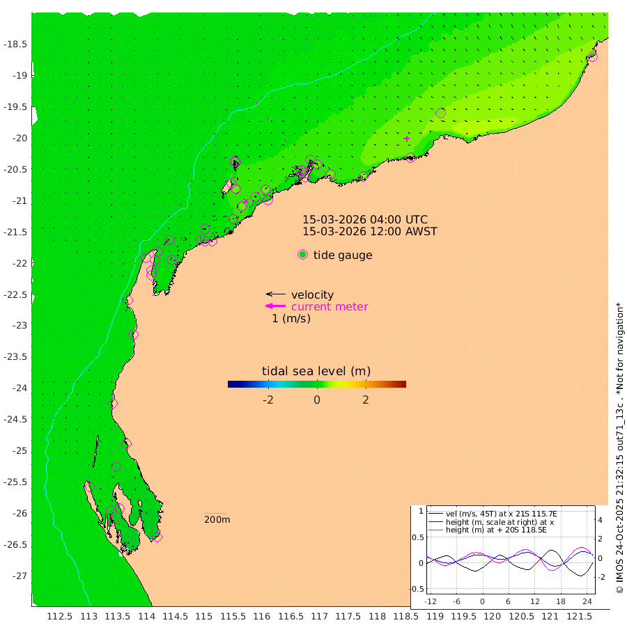 3cm/s -133T +12cm/s rms + 5cm/s -173T. NWSBAR 206m 2cm/s 35T +22cm/s rms + 10cm/s -148T. TAN100 109m 4cm/s -82T +11cm/s rms + 8cm/s -129T. PIL200 208m 4cm/s -53T +13cm/s rms + 7cm/s -137T. PIL100 105m 5cm/s -49T +12cm/s rms + 2cm/s -92T. PIL050 55m 1cm/s 23T +18cm/s rms + 4cm/s -149T. NRSNIN 61m 4cm/s -42T +6cm/s rms + 3cm/s 112T. NW Shelf M6 65m 7cm Withnell Point 2cm Denham -1cm Shark Bay (Inr Bn) 1cm Shark Bay -6cm Useless Loop -11cm Hamelin Pool 13cm Carnarvon 10cm Cape Cuvier 9cm Coral Bay 7cm Norwegian Bay 19cm Badjirrajirra 11cm Tantabiddi 16cm Point Murat 18cm Exmouth 23cm Learmonth 12cm Y Island 12cm North Muiron Island 12cm Roller 16cm Ashburton North 17cm Onslow (Beadon Creek) 16cm Thevenard Island 26cm Large Island 39cm North Sandy Island 24cm Barrow Island (Wapet Landing) 34cm Barrow Island (Tanker Mooring) 32cm Withnell Bay 23cm Trimouille Island 25cm North West Island 21cm Fortescue Road 40cm Steamboat Island 32cm Sholl Island 32cm Fairway Beacon 33cm Mawby Island 33cm Dampier (King Bay) 29cm Cape Legendre 37cm Hauy Island 42cm Port Walcott (Cape Lambert) 54cm Depuch Island 51cm Port Hedland 43cm Bedout Island -6cm Lagrange Bay