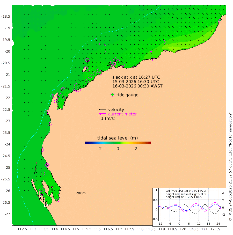 4cm/s -120T +12cm/s rms + 5cm/s -173T. NWSBAR 206m 6cm/s -137T +22cm/s rms + 10cm/s -148T. TAN100 109m 8cm/s -70T +11cm/s rms + 8cm/s -129T. PIL200 208m 13cm/s -52T +13cm/s rms + 7cm/s -137T. PIL100 105m 15cm/s -48T +12cm/s rms + 2cm/s -92T. PIL050 55m 7cm/s -135T +18cm/s rms + 4cm/s -149T. NRSNIN 61m 18cm/s -62T +6cm/s rms + 3cm/s 112T. NW Shelf M6 65m -4cm Withnell Point 11cm Denham 13cm Shark Bay (Inr Bn) 9cm Shark Bay 17cm Useless Loop 12cm Hamelin Pool -14cm Carnarvon -19cm Cape Cuvier -19cm Coral Bay -21cm Norwegian Bay -3cm Badjirrajirra -16cm Tantabiddi -8cm Point Murat -4cm Exmouth 3cm Learmonth -11cm Y Island -14cm North Muiron Island -13cm Roller -12cm Ashburton North -9cm Onslow (Beadon Creek) -11cm Thevenard Island 1cm Large Island 11cm North Sandy Island -2cm Barrow Island (Wapet Landing) 13cm Barrow Island (Tanker Mooring) 0cm Withnell Bay 7cm Trimouille Island -5cm North West Island -7cm Fortescue Road 0cm Steamboat Island 15cm Sholl Island -1cm Fairway Beacon -3cm Mawby Island 0cm Dampier (King Bay) -8cm Cape Legendre 6cm Hauy Island 10cm Port Walcott (Cape Lambert) 17cm Depuch Island 18cm Port Hedland 15cm Bedout Island -60cm Lagrange Bay
