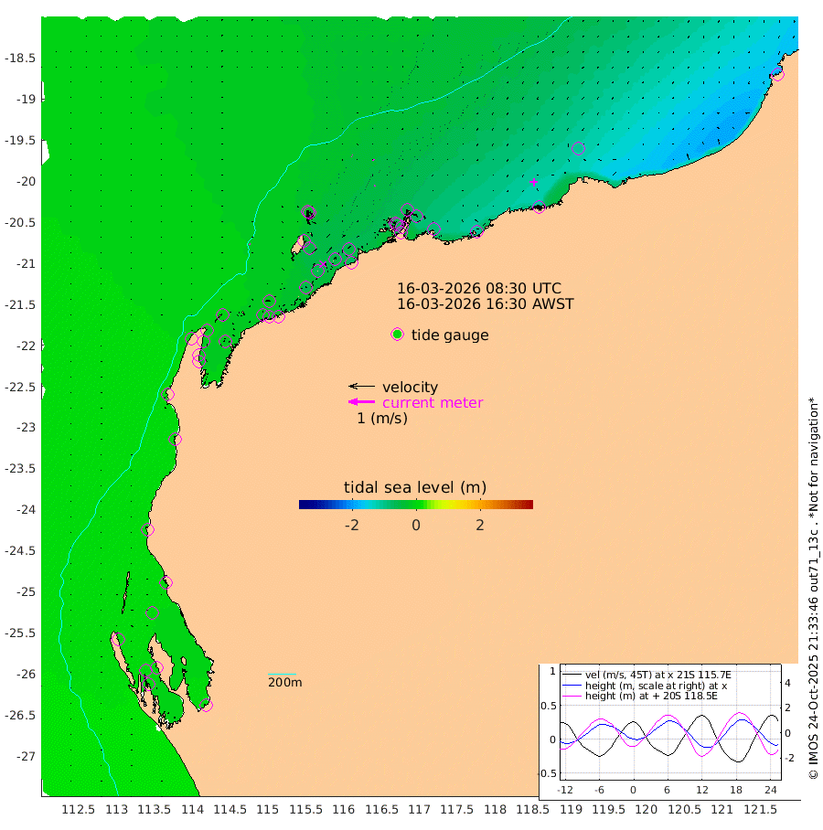 3cm/s 126T +12cm/s rms + 5cm/s -173T. NWSBAR 206m 1cm/s 24T +22cm/s rms + 10cm/s -148T. TAN100 109m 0cm/s -30T +11cm/s rms + 8cm/s -129T. PIL200 208m 2cm/s -84T +13cm/s rms + 7cm/s -137T. PIL100 105m 3cm/s -108T +12cm/s rms + 2cm/s -92T. PIL050 55m 0cm/s -9T +18cm/s rms + 4cm/s -149T. NRSNIN 61m 3cm/s 135T +6cm/s rms + 3cm/s 112T. NW Shelf M6 65m 3cm Withnell Point 7cm Denham 6cm Shark Bay (Inr Bn) 9cm Shark Bay 10cm Useless Loop 2cm Hamelin Pool 1cm Carnarvon 5cm Cape Cuvier 3cm Coral Bay 2cm Norwegian Bay -22cm Badjirrajirra -2cm Tantabiddi -12cm Point Murat -18cm Exmouth -31cm Learmonth -17cm Y Island -9cm North Muiron Island -15cm Roller -18cm Ashburton North -21cm Onslow (Beadon Creek) -19cm Thevenard Island -59cm Large Island -56cm North Sandy Island -37cm Barrow Island (Wapet Landing) -53cm Barrow Island (Tanker Mooring) -63cm Withnell Bay -41cm Trimouille Island -24cm North West Island -76cm Fortescue Road -47cm Steamboat Island -51cm Sholl Island -60cm Fairway Beacon -59cm Mawby Island -62cm Dampier (King Bay) -58cm Cape Legendre -69cm Hauy Island -83cm Port Walcott (Cape Lambert) -105cm Depuch Island -110cm Port Hedland -106cm Bedout Island -191cm Lagrange Bay