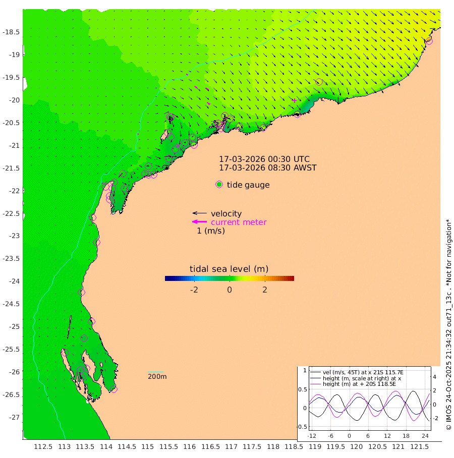 6cm/s 44T +12cm/s rms + 5cm/s -173T. NWSBAR 206m 7cm/s 44T +22cm/s rms + 10cm/s -148T. TAN100 109m 12cm/s 110T +11cm/s rms + 8cm/s -129T. PIL200 208m 21cm/s 126T +13cm/s rms + 7cm/s -137T. PIL100 105m 25cm/s 128T +12cm/s rms + 2cm/s -92T. PIL050 55m 8cm/s 48T +18cm/s rms + 4cm/s -149T. NRSNIN 61m 23cm/s 123T +6cm/s rms + 3cm/s 112T. NW Shelf M6 65m -6cm Withnell Point -26cm Denham -24cm Shark Bay (Inr Bn) -25cm Shark Bay -31cm Useless Loop -9cm Hamelin Pool 5cm Carnarvon 11cm Cape Cuvier 13cm Coral Bay 16cm Norwegian Bay 8cm Badjirrajirra 15cm Tantabiddi 10cm Point Murat 8cm Exmouth 10cm Learmonth 17cm Y Island 15cm North Muiron Island 20cm Roller 21cm Ashburton North 19cm Onslow (Beadon Creek) 21cm Thevenard Island 20cm Large Island 16cm North Sandy Island 23cm Barrow Island (Wapet Landing) 11cm Barrow Island (Tanker Mooring) 44cm Withnell Bay 21cm Trimouille Island 16cm North West Island 41cm Fortescue Road 27cm Steamboat Island 13cm Sholl Island 42cm Fairway Beacon 44cm Mawby Island 43cm Dampier (King Bay) 51cm Cape Legendre 37cm Hauy Island 47cm Port Walcott (Cape Lambert) 53cm Depuch Island 62cm Port Hedland 71cm Bedout Island 196cm Lagrange Bay