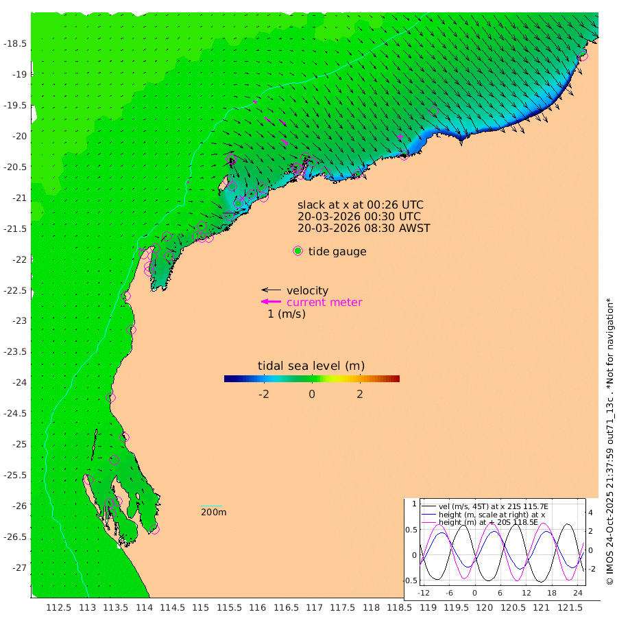 11cm/s 68T +12cm/s rms + 5cm/s -173T. NWSBAR 206m 11cm/s 42T +22cm/s rms + 10cm/s -148T. TAN100 109m 20cm/s 110T +11cm/s rms + 8cm/s -129T. PIL200 208m 35cm/s 128T +13cm/s rms + 7cm/s -137T. PIL100 105m 42cm/s 130T +12cm/s rms + 2cm/s -92T. PIL050 55m 11cm/s 50T +18cm/s rms + 4cm/s -149T. NRSNIN 61m 39cm/s 131T +6cm/s rms + 3cm/s 112T. NW Shelf M6 65m -5cm Withnell Point -21cm Denham -16cm Shark Bay (Inr Bn) -19cm Shark Bay -17cm Useless Loop 1cm Hamelin Pool -1cm Carnarvon 17cm Cape Cuvier 19cm Coral Bay 18cm Norwegian Bay -28cm Badjirrajirra 14cm Tantabiddi -10cm Point Murat -21cm Exmouth -28cm Learmonth -7cm Y Island 6cm North Muiron Island 2cm Roller 2cm Ashburton North -5cm Onslow (Beadon Creek) 1cm Thevenard Island -58cm Large Island -64cm North Sandy Island -20cm Barrow Island (Wapet Landing) -65cm Barrow Island (Tanker Mooring) -18cm Withnell Bay -16cm Trimouille Island -8cm North West Island -63cm Fortescue Road -27cm Steamboat Island -59cm Sholl Island -21cm Fairway Beacon -19cm Mawby Island -20cm Dampier (King Bay) -7cm Cape Legendre -45cm Hauy Island -42cm Port Walcott (Cape Lambert) -56cm Depuch Island -52cm Port Hedland -25cm Bedout Island 5cm Lagrange Bay