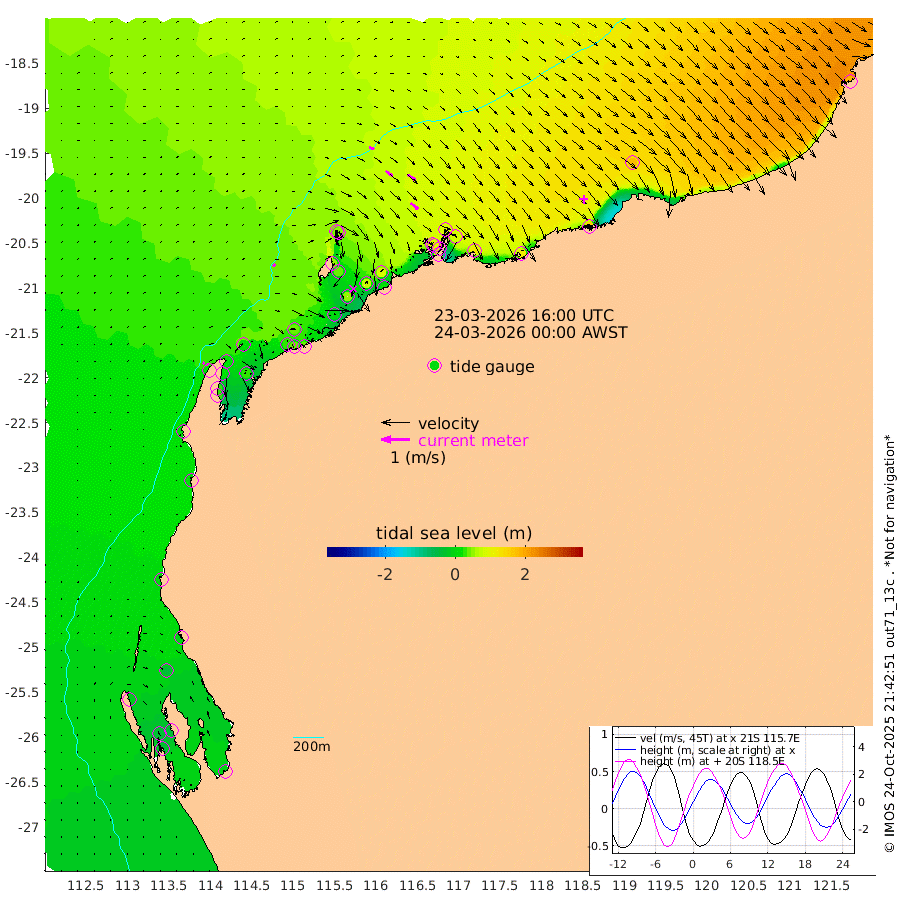 10cm/s 49T +12cm/s rms + 5cm/s -173T. NWSBAR 206m 9cm/s 44T +22cm/s rms + 10cm/s -148T. TAN100 109m 19cm/s 108T +11cm/s rms + 8cm/s -129T. PIL200 208m 29cm/s 127T +13cm/s rms + 7cm/s -137T. PIL100 105m 35cm/s 129T +12cm/s rms + 2cm/s -92T. PIL050 55m 8cm/s 49T +18cm/s rms + 4cm/s -149T. NRSNIN 61m 32cm/s 127T +6cm/s rms + 3cm/s 112T. NW Shelf M6 65m -22cm Withnell Point -41cm Denham -39cm Shark Bay (Inr Bn) -38cm Shark Bay -41cm Useless Loop -1cm Hamelin Pool -6cm Carnarvon 8cm Cape Cuvier 11cm Coral Bay 11cm Norwegian Bay 24cm Badjirrajirra 17cm Tantabiddi 18cm Point Murat 19cm Exmouth 27cm Learmonth 29cm Y Island 22cm North Muiron Island 31cm Roller 36cm Ashburton North 36cm Onslow (Beadon Creek) 37cm Thevenard Island 3cm Large Island 52cm North Sandy Island 50cm Barrow Island (Wapet Landing) 44cm Barrow Island (Tanker Mooring) 94cm Withnell Bay 48cm Trimouille Island 41cm North West Island 20cm Fortescue Road 84cm Steamboat Island 77cm Sholl Island 90cm Fairway Beacon 95cm Mawby Island 94cm Dampier (King Bay) 93cm Cape Legendre 90cm Hauy Island 115cm Port Walcott (Cape Lambert) 117cm Depuch Island 153cm Port Hedland 180cm Bedout Island 191cm Lagrange Bay
