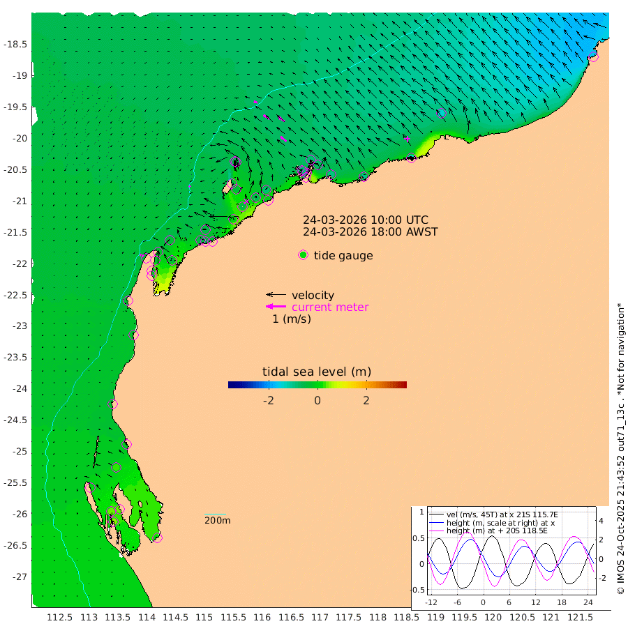 9cm/s -129T +12cm/s rms + 5cm/s -173T. NWSBAR 206m 13cm/s -138T +22cm/s rms + 10cm/s -148T. TAN100 109m 20cm/s -74T +11cm/s rms + 8cm/s -129T. PIL200 208m 33cm/s -54T +13cm/s rms + 7cm/s -137T. PIL100 105m 38cm/s -51T +12cm/s rms + 2cm/s -92T. PIL050 55m 13cm/s -131T +18cm/s rms + 4cm/s -149T. NRSNIN 61m 40cm/s -52T +6cm/s rms + 3cm/s 112T. NW Shelf M6 65m 5cm Withnell Point 37cm Denham 36cm Shark Bay (Inr Bn) 33cm Shark Bay 46cm Useless Loop 16cm Hamelin Pool -16cm Carnarvon -31cm Cape Cuvier -34cm Coral Bay -32cm Norwegian Bay -29cm Badjirrajirra -36cm Tantabiddi -30cm Point Murat -28cm Exmouth -35cm Learmonth -37cm Y Island -37cm North Muiron Island -45cm Roller -47cm Ashburton North -45cm Onslow (Beadon Creek) -48cm Thevenard Island -11cm Large Island -51cm North Sandy Island -53cm Barrow Island (Wapet Landing) -38cm Barrow Island (Tanker Mooring) -89cm Withnell Bay -53cm Trimouille Island -52cm North West Island -13cm Fortescue Road -82cm Steamboat Island -65cm Sholl Island -85cm Fairway Beacon -91cm Mawby Island -89cm Dampier (King Bay) -89cm Cape Legendre -78cm Hauy Island -99cm Port Walcott (Cape Lambert) -101cm Depuch Island -126cm Port Hedland -140cm Bedout Island -161cm Lagrange Bay