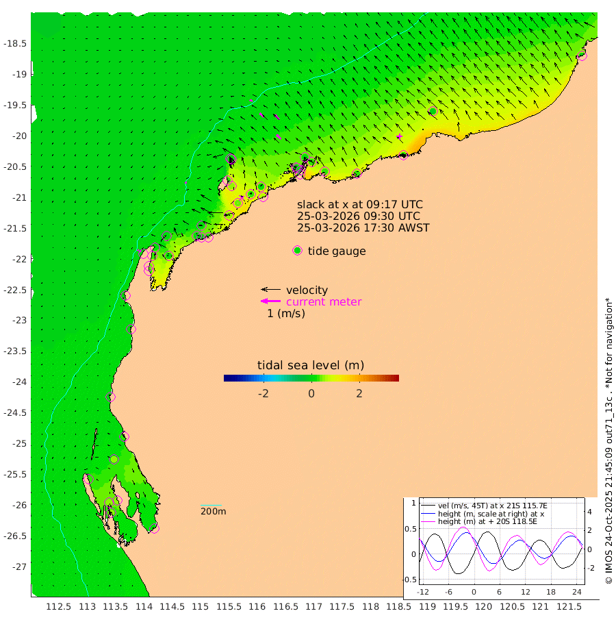9cm/s -111T +12cm/s rms + 5cm/s -173T. NWSBAR 206m 10cm/s -138T +22cm/s rms + 10cm/s -148T. TAN100 109m 16cm/s -72T +11cm/s rms + 8cm/s -129T. PIL200 208m 28cm/s -49T +13cm/s rms + 7cm/s -137T. PIL100 105m 32cm/s -45T +12cm/s rms + 2cm/s -92T. PIL050 55m 10cm/s -129T +18cm/s rms + 4cm/s -149T. NRSNIN 61m 34cm/s -44T +6cm/s rms + 3cm/s 112T. NW Shelf M6 65m 29cm Withnell Point 51cm Denham 49cm Shark Bay (Inr Bn) 48cm Shark Bay 52cm Useless Loop 4cm Hamelin Pool 23cm Carnarvon 2cm Cape Cuvier 1cm Coral Bay 5cm Norwegian Bay 36cm Badjirrajirra 2cm Tantabiddi 21cm Point Murat 31cm Exmouth 30cm Learmonth 20cm Y Island 9cm North Muiron Island 8cm Roller 9cm Ashburton North 16cm Onslow (Beadon Creek) 10cm Thevenard Island 55cm Large Island 42cm North Sandy Island 23cm Barrow Island (Wapet Landing) 52cm Barrow Island (Tanker Mooring) 14cm Withnell Bay 18cm Trimouille Island 12cm North West Island 60cm Fortescue Road 19cm Steamboat Island 32cm Sholl Island 15cm Fairway Beacon 13cm Mawby Island 14cm Dampier (King Bay) 18cm Cape Legendre 31cm Hauy Island 24cm Port Walcott (Cape Lambert) 26cm Depuch Island 23cm Port Hedland -2cm Bedout Island 1cm Lagrange Bay