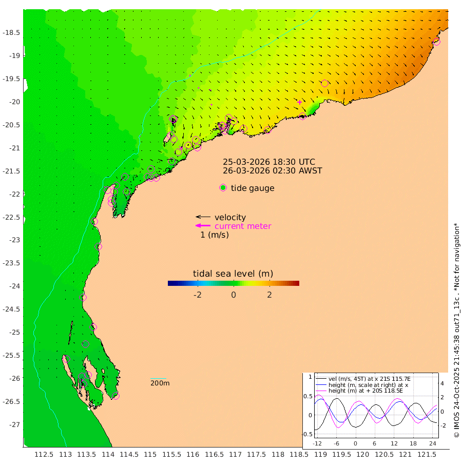 4cm/s 12T +12cm/s rms + 5cm/s -173T. NWSBAR 206m 2cm/s 57T +22cm/s rms + 10cm/s -148T. TAN100 109m 6cm/s 100T +11cm/s rms + 8cm/s -129T. PIL200 208m 8cm/s 119T +13cm/s rms + 7cm/s -137T. PIL100 105m 9cm/s 121T +12cm/s rms + 2cm/s -92T. PIL050 55m 2cm/s 61T +18cm/s rms + 4cm/s -149T. NRSNIN 61m 11cm/s 125T +6cm/s rms + 3cm/s 112T. NW Shelf M6 65m -22cm Withnell Point -36cm Denham -35cm Shark Bay (Inr Bn) -36cm Shark Bay -39cm Useless Loop -4cm Hamelin Pool -8cm Carnarvon -4cm Cape Cuvier -2cm Coral Bay 2cm Norwegian Bay 30cm Badjirrajirra 4cm Tantabiddi 16cm Point Murat 23cm Exmouth 32cm Learmonth 24cm Y Island 12cm North Muiron Island 21cm Roller 24cm Ashburton North 27cm Onslow (Beadon Creek) 25cm Thevenard Island 32cm Large Island 64cm North Sandy Island 45cm Barrow Island (Wapet Landing) 60cm Barrow Island (Tanker Mooring) 77cm Withnell Bay 50cm Trimouille Island 27cm North West Island 50cm Fortescue Road 72cm Steamboat Island 91cm Sholl Island 76cm Fairway Beacon 76cm Mawby Island 78cm Dampier (King Bay) 75cm Cape Legendre 86cm Hauy Island 102cm Port Walcott (Cape Lambert) 102cm Depuch Island 135cm Port Hedland 139cm Bedout Island 163cm Lagrange Bay