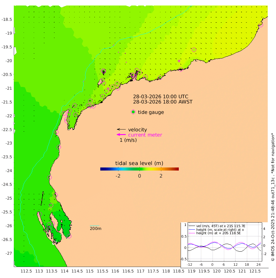 2cm/s 50T +12cm/s rms + 5cm/s -173T. NWSBAR 206m 1cm/s 50T +22cm/s rms + 10cm/s -148T. TAN100 109m 3cm/s 103T +11cm/s rms + 8cm/s -129T. PIL200 208m 4cm/s 102T +13cm/s rms + 7cm/s -137T. PIL100 105m 6cm/s 107T +12cm/s rms + 2cm/s -92T. PIL050 55m 2cm/s 35T +18cm/s rms + 4cm/s -149T. NRSNIN 61m 4cm/s 40T +6cm/s rms + 3cm/s 112T. NW Shelf M6 65m 29cm Withnell Point 28cm Denham 27cm Shark Bay (Inr Bn) 30cm Shark Bay 26cm Useless Loop -5cm Hamelin Pool 38cm Carnarvon 32cm Cape Cuvier 33cm Coral Bay 35cm Norwegian Bay 48cm Badjirrajirra 33cm Tantabiddi 40cm Point Murat 43cm Exmouth 43cm Learmonth 43cm Y Island 36cm North Muiron Island 37cm Roller 41cm Ashburton North 43cm Onslow (Beadon Creek) 42cm Thevenard Island 52cm Large Island 47cm North Sandy Island 48cm Barrow Island (Wapet Landing) 51cm Barrow Island (Tanker Mooring) 54cm Withnell Bay 37cm Trimouille Island 41cm North West Island 59cm Fortescue Road 46cm Steamboat Island 48cm Sholl Island 53cm Fairway Beacon 56cm Mawby Island 55cm Dampier (King Bay) 63cm Cape Legendre 53cm Hauy Island 60cm Port Walcott (Cape Lambert) 43cm Depuch Island 65cm Port Hedland 60cm Bedout Island 97cm Lagrange Bay