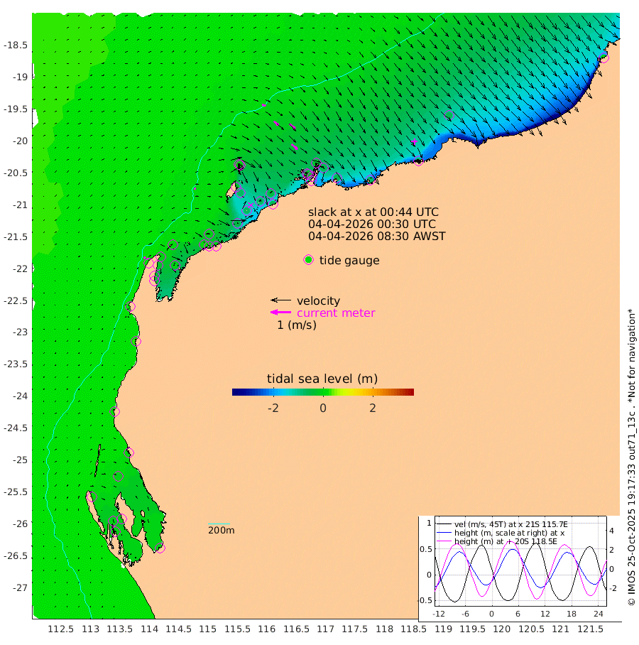 10cm/s 74T +12cm/s rms + 5cm/s -173T. NWSBAR 206m 11cm/s 40T +22cm/s rms + 10cm/s -148T. TAN100 109m 18cm/s 110T +11cm/s rms + 8cm/s -129T. PIL200 208m 32cm/s 129T +13cm/s rms + 7cm/s -137T. PIL100 105m 38cm/s 131T +12cm/s rms + 2cm/s -92T. PIL050 55m 12cm/s 49T +18cm/s rms + 4cm/s -149T. NRSNIN 61m 36cm/s 130T +6cm/s rms + 3cm/s 112T. NW Shelf M6 65m 4cm Withnell Point -11cm Denham -7cm Shark Bay (Inr Bn) -8cm Shark Bay -9cm Useless Loop -2cm Hamelin Pool 5cm Carnarvon 22cm Cape Cuvier 23cm Coral Bay 20cm Norwegian Bay -32cm Badjirrajirra 17cm Tantabiddi -10cm Point Murat -23cm Exmouth -31cm Learmonth -8cm Y Island 8cm North Muiron Island 5cm Roller 0cm Ashburton North -8cm Onslow (Beadon Creek) 0cm Thevenard Island -55cm Large Island -68cm North Sandy Island -27cm Barrow Island (Wapet Landing) -74cm Barrow Island (Tanker Mooring) -33cm Withnell Bay -28cm Trimouille Island -11cm North West Island -64cm Fortescue Road -46cm Steamboat Island -76cm Sholl Island -36cm Fairway Beacon -33cm Mawby Island -36cm Dampier (King Bay) -29cm Cape Legendre -64cm Hauy Island -63cm Port Walcott (Cape Lambert) -71cm Depuch Island -81cm Port Hedland -58cm Bedout Island -8cm Lagrange Bay