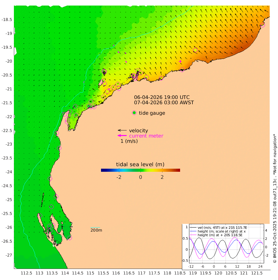 9cm/s -84T +12cm/s rms + 5cm/s -173T. NWSBAR 206m 5cm/s -143T +22cm/s rms + 10cm/s -148T. TAN100 109m 10cm/s -66T +11cm/s rms + 8cm/s -129T. PIL200 208m 18cm/s -47T +13cm/s rms + 7cm/s -137T. PIL100 105m 21cm/s -41T +12cm/s rms + 2cm/s -92T. PIL050 55m 5cm/s -131T +18cm/s rms + 4cm/s -149T. NRSNIN 61m 18cm/s -44T +6cm/s rms + 3cm/s 112T. NW Shelf M6 65m -1cm Withnell Point -9cm Denham -13cm Shark Bay (Inr Bn) -11cm Shark Bay -20cm Useless Loop -15cm Hamelin Pool 10cm Carnarvon -1cm Cape Cuvier -1cm Coral Bay 4cm Norwegian Bay 49cm Badjirrajirra 5cm Tantabiddi 28cm Point Murat 40cm Exmouth 52cm Learmonth 31cm Y Island 15cm North Muiron Island 22cm Roller 25cm Ashburton North 32cm Onslow (Beadon Creek) 27cm Thevenard Island 95cm Large Island 93cm North Sandy Island 54cm Barrow Island (Wapet Landing) 93cm Barrow Island (Tanker Mooring) 71cm Withnell Bay 56cm Trimouille Island 33cm North West Island 111cm Fortescue Road 75cm Steamboat Island 102cm Sholl Island 73cm Fairway Beacon 71cm Mawby Island 73cm Dampier (King Bay) 67cm Cape Legendre 96cm Hauy Island 102cm Port Walcott (Cape Lambert) 114cm Depuch Island 128cm Port Hedland 98cm Bedout Island 166cm Lagrange Bay