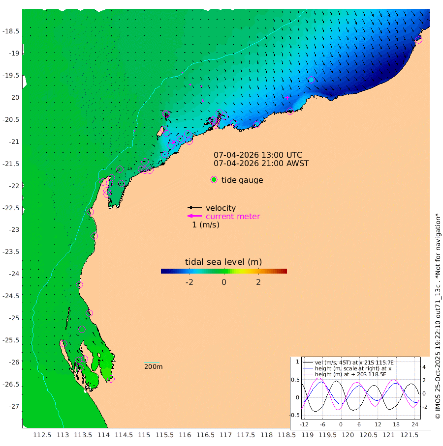 7cm/s 87T +12cm/s rms + 5cm/s -173T. NWSBAR 206m 1cm/s 39T +22cm/s rms + 10cm/s -148T. TAN100 109m 7cm/s 111T +11cm/s rms + 8cm/s -129T. PIL200 208m 13cm/s 138T +13cm/s rms + 7cm/s -137T. PIL100 105m 16cm/s 146T +12cm/s rms + 2cm/s -92T. PIL050 55m 1cm/s 86T +18cm/s rms + 4cm/s -149T. NRSNIN 61m 10cm/s 151T +6cm/s rms + 3cm/s 112T. NW Shelf M6 65m -36cm Withnell Point -26cm Denham -21cm Shark Bay (Inr Bn) -27cm Shark Bay -9cm Useless Loop 22cm Hamelin Pool -52cm Carnarvon -37cm Cape Cuvier -38cm Coral Bay -42cm Norwegian Bay -90cm Badjirrajirra -43cm Tantabiddi -67cm Point Murat -81cm Exmouth -89cm Learmonth -73cm Y Island -55cm North Muiron Island -64cm Roller -66cm Ashburton North -73cm Onslow (Beadon Creek) -69cm Thevenard Island -149cm Large Island -139cm North Sandy Island -97cm Barrow Island (Wapet Landing) -136cm Barrow Island (Tanker Mooring) -119cm Withnell Bay -99cm Trimouille Island -74cm North West Island -159cm Fortescue Road -119cm Steamboat Island -134cm Sholl Island -119cm Fairway Beacon -116cm Mawby Island -120cm Dampier (King Bay) -116cm Cape Legendre -138cm Hauy Island -150cm Port Walcott (Cape Lambert) -164cm Depuch Island -178cm Port Hedland -151cm Bedout Island -251cm Lagrange Bay