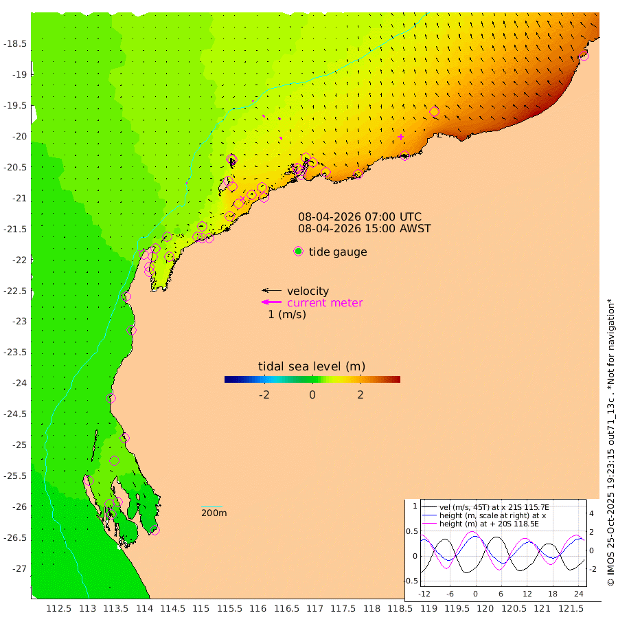 6cm/s -94T +12cm/s rms + 5cm/s -173T. NWSBAR 206m 4cm/s -136T +22cm/s rms + 10cm/s -148T. TAN100 109m 7cm/s -66T +11cm/s rms + 8cm/s -129T. PIL200 208m 14cm/s -40T +13cm/s rms + 7cm/s -137T. PIL100 105m 16cm/s -33T +12cm/s rms + 2cm/s -92T. PIL050 55m 4cm/s -126T +18cm/s rms + 4cm/s -149T. NRSNIN 61m 12cm/s -24T +6cm/s rms + 3cm/s 112T. NW Shelf M6 65m 38cm Withnell Point 44cm Denham 42cm Shark Bay (Inr Bn) 45cm Shark Bay 39cm Useless Loop -6cm Hamelin Pool 46cm Carnarvon 29cm Cape Cuvier 32cm Coral Bay 35cm Norwegian Bay 83cm Badjirrajirra 37cm Tantabiddi 61cm Point Murat 75cm Exmouth 81cm Learmonth 70cm Y Island 50cm North Muiron Island 59cm Roller 60cm Ashburton North 67cm Onslow (Beadon Creek) 62cm Thevenard Island 140cm Large Island 125cm North Sandy Island 89cm Barrow Island (Wapet Landing) 125cm Barrow Island (Tanker Mooring) 109cm Withnell Bay 85cm Trimouille Island 67cm North West Island 152cm Fortescue Road 104cm Steamboat Island 121cm Sholl Island 108cm Fairway Beacon 107cm Mawby Island 110cm Dampier (King Bay) 104cm Cape Legendre 124cm Hauy Island 138cm Port Walcott (Cape Lambert) 147cm Depuch Island 166cm Port Hedland 152cm Bedout Island 251cm Lagrange Bay