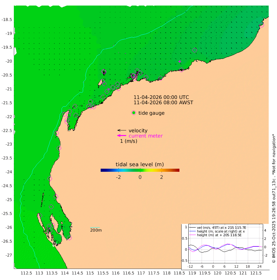 1cm/s -168T +12cm/s rms + 5cm/s -173T. NWSBAR 206m 2cm/s 47T +22cm/s rms + 10cm/s -148T. TAN100 109m 3cm/s -92T +11cm/s rms + 8cm/s -129T. PIL200 208m 1cm/s -100T +13cm/s rms + 7cm/s -137T. PIL100 105m 2cm/s -71T +12cm/s rms + 2cm/s -92T. PIL050 55m 3cm/s 42T +18cm/s rms + 4cm/s -149T. NRSNIN 61m 5cm/s -60T +6cm/s rms + 3cm/s 112T. NW Shelf M6 65m -1cm Withnell Point -8cm Denham -12cm Shark Bay (Inr Bn) -9cm Shark Bay -16cm Useless Loop -11cm Hamelin Pool 1cm Carnarvon 0cm Cape Cuvier -1cm Coral Bay -1cm Norwegian Bay -12cm Badjirrajirra -3cm Tantabiddi -7cm Point Murat -10cm Exmouth -11cm Learmonth -12cm Y Island -7cm North Muiron Island -11cm Roller -8cm Ashburton North -10cm Onslow (Beadon Creek) -9cm Thevenard Island -4cm Large Island -18cm North Sandy Island -14cm Barrow Island (Wapet Landing) -19cm Barrow Island (Tanker Mooring) -22cm Withnell Bay -18cm Trimouille Island -10cm North West Island 1cm Fortescue Road -26cm Steamboat Island -30cm Sholl Island -21cm Fairway Beacon -22cm Mawby Island -22cm Dampier (King Bay) -19cm Cape Legendre -24cm Hauy Island -29cm Port Walcott (Cape Lambert) -28cm Depuch Island -38cm Port Hedland -47cm Bedout Island -34cm Lagrange Bay
