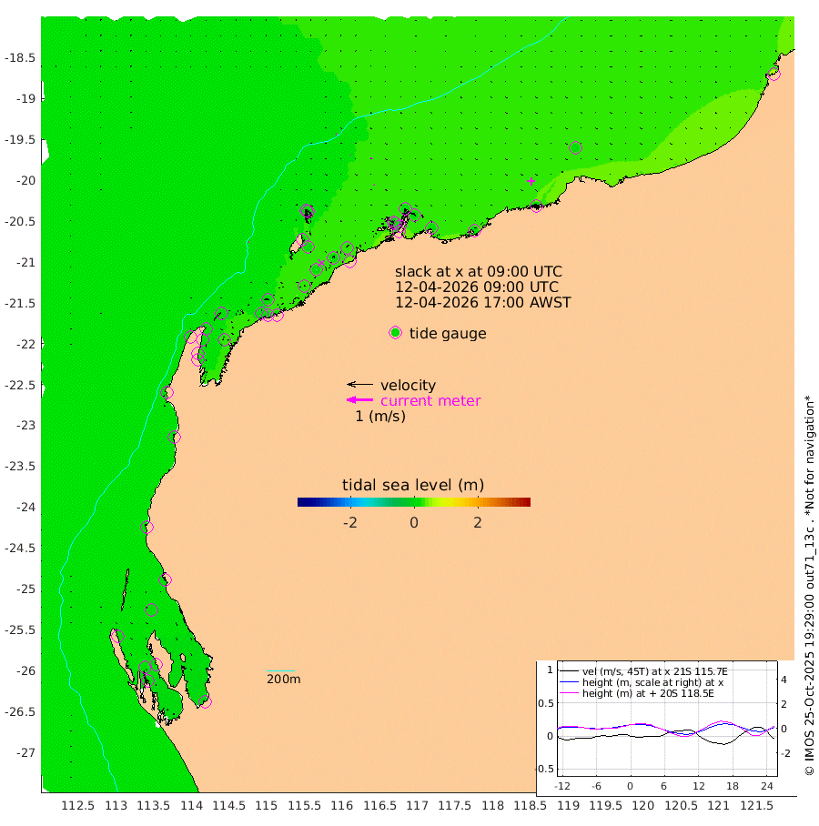 2cm/s 60T +12cm/s rms + 5cm/s -173T. NWSBAR 206m 0cm/s 156T +22cm/s rms + 10cm/s -148T. TAN100 109m 2cm/s 98T +11cm/s rms + 8cm/s -129T. PIL200 208m 2cm/s 116T +13cm/s rms + 7cm/s -137T. PIL100 105m 3cm/s 115T +12cm/s rms + 2cm/s -92T. PIL050 55m 0cm/s -28T +18cm/s rms + 4cm/s -149T. NRSNIN 61m 4cm/s 47T +6cm/s rms + 3cm/s 112T. NW Shelf M6 65m 17cm Withnell Point 20cm Denham 18cm Shark Bay (Inr Bn) 22cm Shark Bay 20cm Useless Loop -1cm Hamelin Pool 21cm Carnarvon 18cm Cape Cuvier 18cm Coral Bay 20cm Norwegian Bay 23cm Badjirrajirra 18cm Tantabiddi 20cm Point Murat 21cm Exmouth 14cm Learmonth 25cm Y Island 20cm North Muiron Island 20cm Roller 19cm Ashburton North 20cm Onslow (Beadon Creek) 20cm Thevenard Island 32cm Large Island 15cm North Sandy Island 19cm Barrow Island (Wapet Landing) 19cm Barrow Island (Tanker Mooring) 18cm Withnell Bay 10cm Trimouille Island 18cm North West Island 34cm Fortescue Road 23cm Steamboat Island 17cm Sholl Island 18cm Fairway Beacon 19cm Mawby Island 18cm Dampier (King Bay) 20cm Cape Legendre 19cm Hauy Island 16cm Port Walcott (Cape Lambert) 11cm Depuch Island 14cm Port Hedland 16cm Bedout Island 60cm Lagrange Bay
