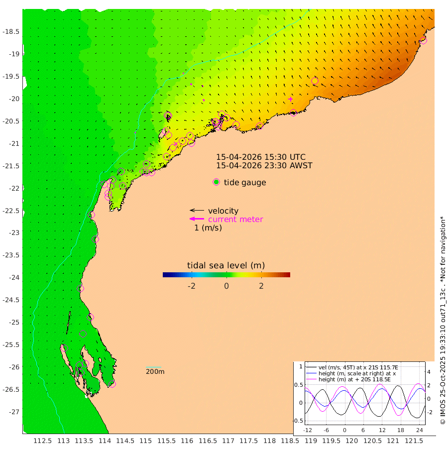 7cm/s -87T +12cm/s rms + 5cm/s -173T. NWSBAR 206m 3cm/s -138T +22cm/s rms + 10cm/s -148T. TAN100 109m 7cm/s -63T +11cm/s rms + 8cm/s -129T. PIL200 208m 12cm/s -43T +13cm/s rms + 7cm/s -137T. PIL100 105m 13cm/s -35T +12cm/s rms + 2cm/s -92T. PIL050 55m 4cm/s -128T +18cm/s rms + 4cm/s -149T. NRSNIN 61m 12cm/s -35T +6cm/s rms + 3cm/s 112T. NW Shelf M6 65m 16cm Withnell Point 16cm Denham 13cm Shark Bay (Inr Bn) 14cm Shark Bay 8cm Useless Loop -9cm Hamelin Pool 23cm Carnarvon 10cm Cape Cuvier 10cm Coral Bay 12cm Norwegian Bay 58cm Badjirrajirra 18cm Tantabiddi 38cm Point Murat 50cm Exmouth 64cm Learmonth 43cm Y Island 29cm North Muiron Island 38cm Roller 40cm Ashburton North 46cm Onslow (Beadon Creek) 42cm Thevenard Island 86cm Large Island 108cm North Sandy Island 69cm Barrow Island (Wapet Landing) 105cm Barrow Island (Tanker Mooring) 97cm Withnell Bay 69cm Trimouille Island 57cm North West Island 96cm Fortescue Road 99cm Steamboat Island 102cm Sholl Island 96cm Fairway Beacon 96cm Mawby Island 97cm Dampier (King Bay) 90cm Cape Legendre 118cm Hauy Island 129cm Port Walcott (Cape Lambert) 162cm Depuch Island 161cm Port Hedland 137cm Bedout Island 188cm Lagrange Bay