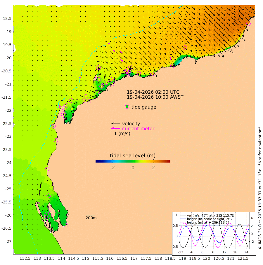8cm/s 52T +12cm/s rms + 5cm/s -173T. NWSBAR 206m 12cm/s 41T +22cm/s rms + 10cm/s -148T. TAN100 109m 19cm/s 109T +11cm/s rms + 8cm/s -129T. PIL200 208m 34cm/s 123T +13cm/s rms + 7cm/s -137T. PIL100 105m 40cm/s 125T +12cm/s rms + 2cm/s -92T. PIL050 55m 12cm/s 46T +18cm/s rms + 4cm/s -149T. NRSNIN 61m 43cm/s 121T +6cm/s rms + 3cm/s 112T. NW Shelf M6 65m 39cm Withnell Point 19cm Denham 20cm Shark Bay (Inr Bn) 23cm Shark Bay 12cm Useless Loop -12cm Hamelin Pool 59cm Carnarvon 63cm Cape Cuvier 67cm Coral Bay 67cm Norwegian Bay 78cm Badjirrajirra 71cm Tantabiddi 72cm Point Murat 74cm Exmouth 77cm Learmonth 84cm Y Island 77cm North Muiron Island 86cm Roller 90cm Ashburton North 91cm Onslow (Beadon Creek) 92cm Thevenard Island 48cm Large Island 98cm North Sandy Island 104cm Barrow Island (Wapet Landing) 92cm Barrow Island (Tanker Mooring) 148cm Withnell Bay 98cm Trimouille Island 97cm North West Island 57cm Fortescue Road 142cm Steamboat Island 99cm Sholl Island 142cm Fairway Beacon 147cm Mawby Island 147cm Dampier (King Bay) 157cm Cape Legendre 135cm Hauy Island 163cm Port Walcott (Cape Lambert) 173cm Depuch Island 197cm Port Hedland 215cm Bedout Island 252cm Lagrange Bay