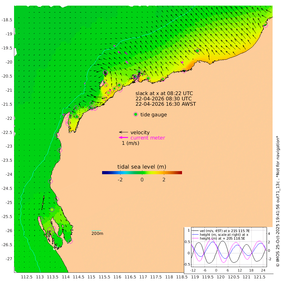 10cm/s -111T +12cm/s rms + 5cm/s -173T. NWSBAR 206m 13cm/s -138T +22cm/s rms + 10cm/s -148T. TAN100 109m 18cm/s -72T +11cm/s rms + 8cm/s -129T. PIL200 208m 33cm/s -50T +13cm/s rms + 7cm/s -137T. PIL100 105m 38cm/s -46T +12cm/s rms + 2cm/s -92T. PIL050 55m 13cm/s -130T +18cm/s rms + 4cm/s -149T. NRSNIN 61m 41cm/s -45T +6cm/s rms + 3cm/s 112T. NW Shelf M6 65m 27cm Withnell Point 52cm Denham 50cm Shark Bay (Inr Bn) 48cm Shark Bay 53cm Useless Loop 6cm Hamelin Pool 18cm Carnarvon -5cm Cape Cuvier -6cm Coral Bay -2cm Norwegian Bay 37cm Badjirrajirra -3cm Tantabiddi 19cm Point Murat 31cm Exmouth 33cm Learmonth 18cm Y Island 5cm North Muiron Island 5cm Roller 6cm Ashburton North 14cm Onslow (Beadon Creek) 7cm Thevenard Island 69cm Large Island 50cm North Sandy Island 24cm Barrow Island (Wapet Landing) 61cm Barrow Island (Tanker Mooring) 16cm Withnell Bay 19cm Trimouille Island 12cm North West Island 73cm Fortescue Road 24cm Steamboat Island 42cm Sholl Island 18cm Fairway Beacon 16cm Mawby Island 17cm Dampier (King Bay) 18cm Cape Legendre 38cm Hauy Island 31cm Port Walcott (Cape Lambert) 36cm Depuch Island 34cm Port Hedland 7cm Bedout Island 3cm Lagrange Bay