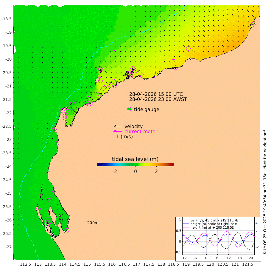 6cm/s -91T +12cm/s rms + 5cm/s -173T. NWSBAR 206m 3cm/s -139T +22cm/s rms + 10cm/s -148T. TAN100 109m 7cm/s -65T +11cm/s rms + 8cm/s -129T. PIL200 208m 12cm/s -45T +13cm/s rms + 7cm/s -137T. PIL100 105m 13cm/s -39T +12cm/s rms + 2cm/s -92T. PIL050 55m 4cm/s -129T +18cm/s rms + 4cm/s -149T. NRSNIN 61m 13cm/s -53T +6cm/s rms + 3cm/s 112T. NW Shelf M6 65m 9cm Withnell Point 8cm Denham 8cm Shark Bay (Inr Bn) 7cm Shark Bay 2cm Useless Loop -6cm Hamelin Pool 12cm Carnarvon 2cm Cape Cuvier 2cm Coral Bay 2cm Norwegian Bay 38cm Badjirrajirra 7cm Tantabiddi 23cm Point Murat 32cm Exmouth 46cm Learmonth 23cm Y Island 14cm North Muiron Island 21cm Roller 23cm Ashburton North 28cm Onslow (Beadon Creek) 24cm Thevenard Island 36cm Large Island 75cm North Sandy Island 45cm Barrow Island (Wapet Landing) 74cm Barrow Island (Tanker Mooring) 64cm Withnell Bay 51cm Trimouille Island 34cm North West Island 36cm Fortescue Road 63cm Steamboat Island 73cm Sholl Island 63cm Fairway Beacon 64cm Mawby Island 65cm Dampier (King Bay) 65cm Cape Legendre 81cm Hauy Island 88cm Port Walcott (Cape Lambert) 105cm Depuch Island 111cm Port Hedland 89cm Bedout Island 61cm Lagrange Bay