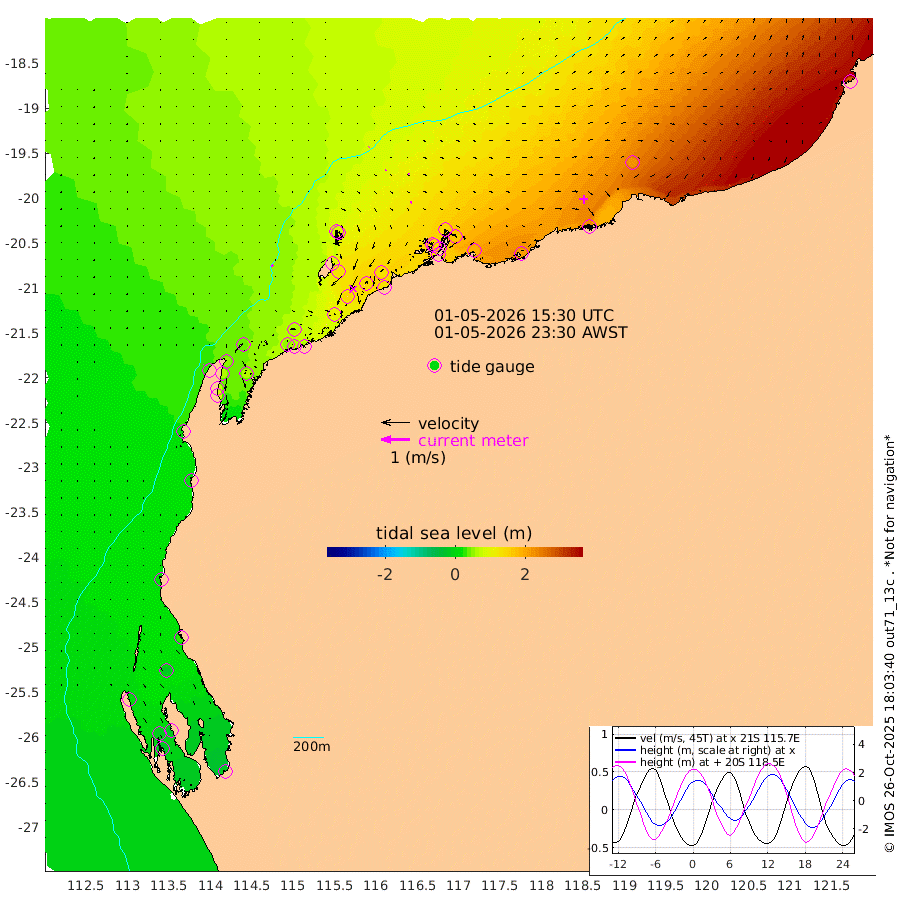 6cm/s -53T +12cm/s rms + 5cm/s -173T. NWSBAR 206m 1cm/s 68T +22cm/s rms + 10cm/s -148T. TAN100 109m 1cm/s 51T +11cm/s rms + 8cm/s -129T. PIL200 208m 3cm/s 43T +13cm/s rms + 7cm/s -137T. PIL100 105m 4cm/s 55T +12cm/s rms + 2cm/s -92T. PIL050 55m 1cm/s 39T +18cm/s rms + 4cm/s -149T. NRSNIN 61m 3cm/s 97T +6cm/s rms + 3cm/s 112T. NW Shelf M6 65m 4cm Withnell Point -12cm Denham -14cm Shark Bay (Inr Bn) -12cm Shark Bay -24cm Useless Loop -17cm Hamelin Pool 23cm Carnarvon 16cm Cape Cuvier 18cm Coral Bay 22cm Norwegian Bay 73cm Badjirrajirra 28cm Tantabiddi 50cm Point Murat 62cm Exmouth 80cm Learmonth 57cm Y Island 40cm North Muiron Island 52cm Roller 58cm Ashburton North 65cm Onslow (Beadon Creek) 61cm Thevenard Island 104cm Large Island 135cm North Sandy Island 95cm Barrow Island (Wapet Landing) 129cm Barrow Island (Tanker Mooring) 140cm Withnell Bay 99cm Trimouille Island 73cm North West Island 124cm Fortescue Road 134cm Steamboat Island 143cm Sholl Island 137cm Fairway Beacon 138cm Mawby Island 142cm Dampier (King Bay) 138cm Cape Legendre 161cm Hauy Island 182cm Port Walcott (Cape Lambert) 203cm Depuch Island 229cm Port Hedland 215cm Bedout Island 289cm Lagrange Bay