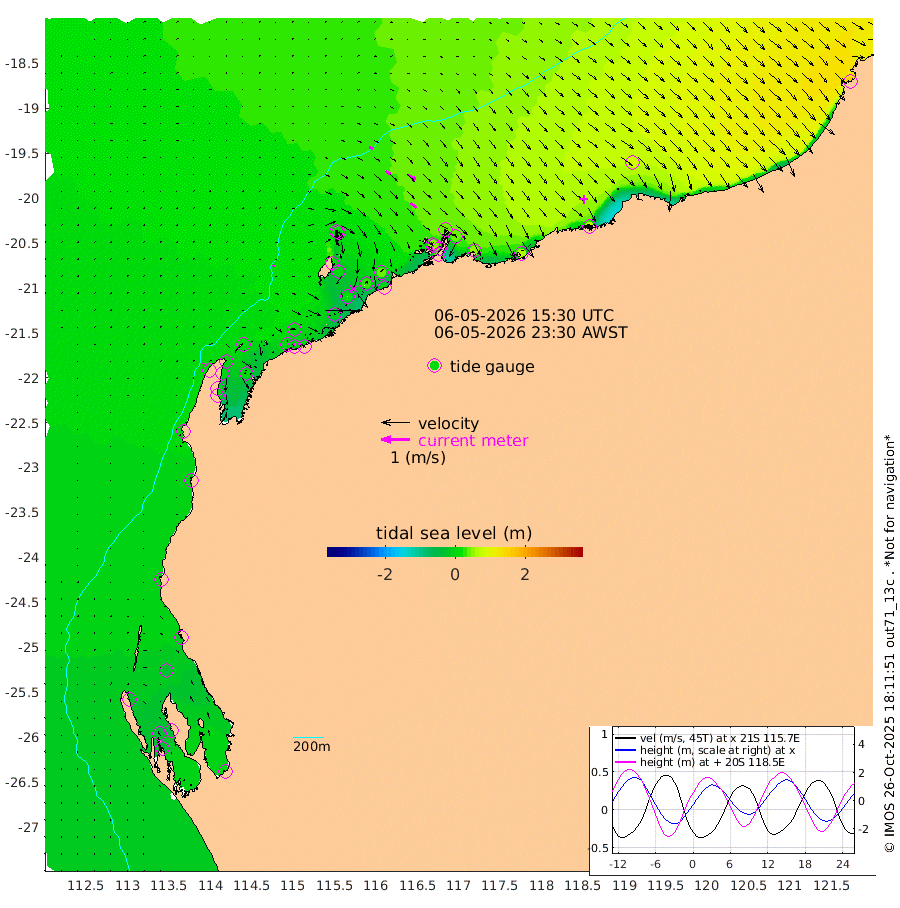 6cm/s 44T +12cm/s rms + 5cm/s -173T. NWSBAR 206m 6cm/s 43T +22cm/s rms + 10cm/s -148T. TAN100 109m 14cm/s 107T +11cm/s rms + 8cm/s -129T. PIL200 208m 22cm/s 127T +13cm/s rms + 7cm/s -137T. PIL100 105m 26cm/s 130T +12cm/s rms + 2cm/s -92T. PIL050 55m 6cm/s 50T +18cm/s rms + 4cm/s -149T. NRSNIN 61m 32cm/s 123T +6cm/s rms + 3cm/s 112T. NW Shelf M6 65m -28cm Withnell Point -43cm Denham -40cm Shark Bay (Inr Bn) -45cm Shark Bay -41cm Useless Loop 1cm Hamelin Pool -19cm Carnarvon -6cm Cape Cuvier -4cm Coral Bay -4cm Norwegian Bay -4cm Badjirrajirra -1cm Tantabiddi -5cm Point Murat -5cm Exmouth 3cm Learmonth 4cm Y Island 2cm North Muiron Island 10cm Roller 8cm Ashburton North 8cm Onslow (Beadon Creek) 8cm Thevenard Island -19cm Large Island 14cm North Sandy Island 14cm Barrow Island (Wapet Landing) 6cm Barrow Island (Tanker Mooring) 42cm Withnell Bay 13cm Trimouille Island 12cm North West Island -4cm Fortescue Road 37cm Steamboat Island 26cm Sholl Island 40cm Fairway Beacon 46cm Mawby Island 41cm Dampier (King Bay) 41cm Cape Legendre 40cm Hauy Island 52cm Port Walcott (Cape Lambert) 64cm Depuch Island 76cm Port Hedland 87cm Bedout Island 163cm Lagrange Bay