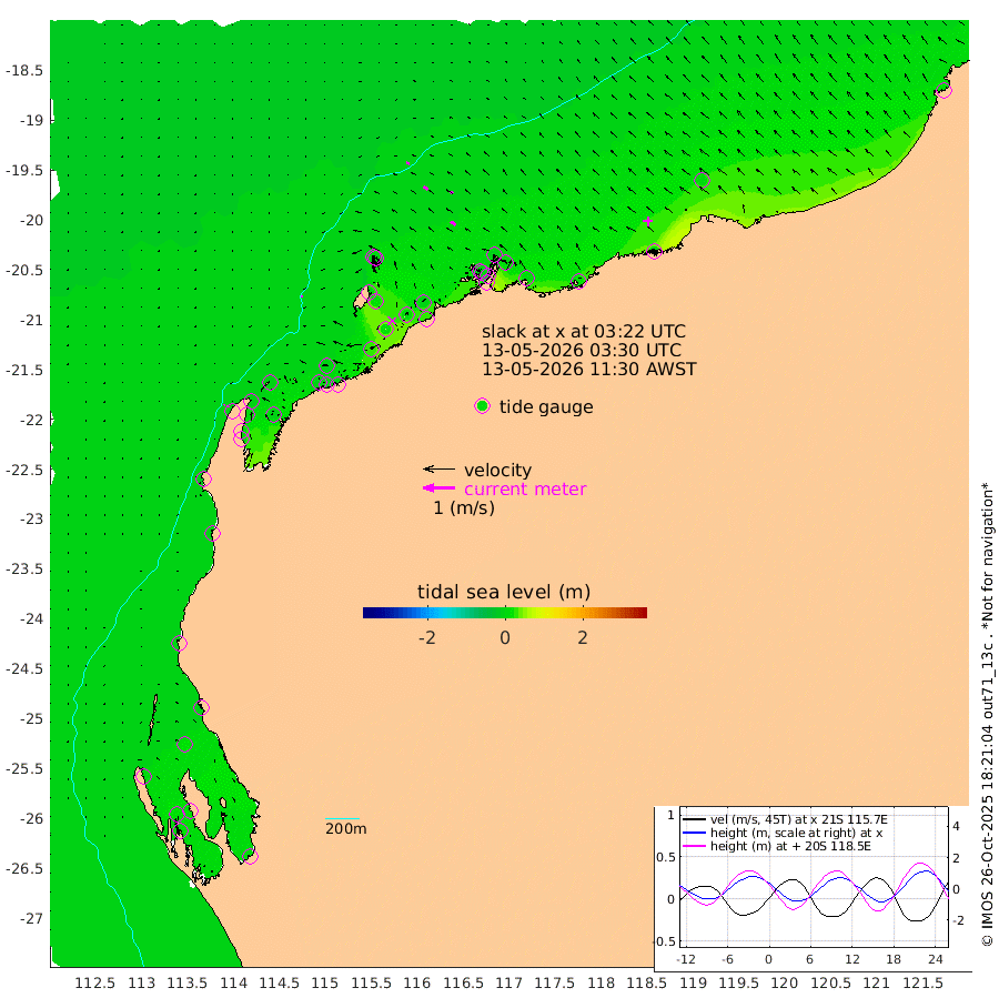 5cm/s -126T +12cm/s rms + 5cm/s -173T. NWSBAR 206m 4cm/s -134T +22cm/s rms + 10cm/s -148T. TAN100 109m 11cm/s -78T +11cm/s rms + 8cm/s -129T. PIL200 208m 16cm/s -56T +13cm/s rms + 7cm/s -137T. PIL100 105m 18cm/s -51T +12cm/s rms + 2cm/s -92T. PIL050 55m 4cm/s -128T +18cm/s rms + 4cm/s -149T. NRSNIN 61m 10cm/s -54T +6cm/s rms + 3cm/s 112T. NW Shelf M6 65m 5cm Withnell Point 17cm Denham 15cm Shark Bay (Inr Bn) 18cm Shark Bay 18cm Useless Loop 5cm Hamelin Pool -2cm Carnarvon -9cm Cape Cuvier -10cm Coral Bay -13cm Norwegian Bay 3cm Badjirrajirra -9cm Tantabiddi -1cm Point Murat 2cm Exmouth 3cm Learmonth -4cm Y Island -7cm North Muiron Island -6cm Roller -6cm Ashburton North -4cm Onslow (Beadon Creek) -6cm Thevenard Island 24cm Large Island 19cm North Sandy Island 1cm Barrow Island (Wapet Landing) 19cm Barrow Island (Tanker Mooring) -4cm Withnell Bay -1cm Trimouille Island -2cm North West Island 28cm Fortescue Road -2cm Steamboat Island 3cm Sholl Island -1cm Fairway Beacon -4cm Mawby Island -3cm Dampier (King Bay) -11cm Cape Legendre 4cm Hauy Island 5cm Port Walcott (Cape Lambert) 13cm Depuch Island 6cm Port Hedland 8cm Bedout Island 13cm Lagrange Bay