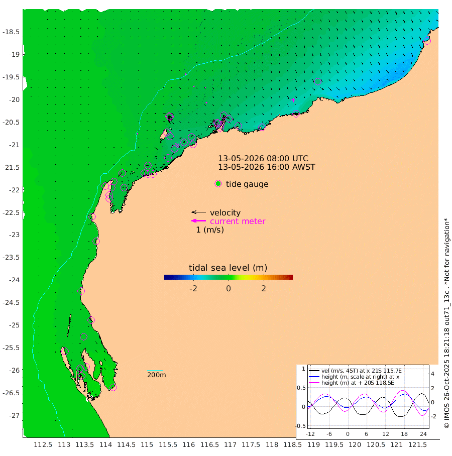 6cm/s 83T +12cm/s rms + 5cm/s -173T. NWSBAR 206m 1cm/s 47T +22cm/s rms + 10cm/s -148T. TAN100 109m 6cm/s 111T +11cm/s rms + 8cm/s -129T. PIL200 208m 7cm/s 142T +13cm/s rms + 7cm/s -137T. PIL100 105m 8cm/s 157T +12cm/s rms + 2cm/s -92T. PIL050 55m 1cm/s 75T +18cm/s rms + 4cm/s -149T. NRSNIN 61m 4cm/s 141T +6cm/s rms + 3cm/s 112T. NW Shelf M6 65m -21cm Withnell Point -18cm Denham -16cm Shark Bay (Inr Bn) -15cm Shark Bay -9cm Useless Loop 10cm Hamelin Pool -26cm Carnarvon -15cm Cape Cuvier -15cm Coral Bay -18cm Norwegian Bay -43cm Badjirrajirra -20cm Tantabiddi -32cm Point Murat -40cm Exmouth -49cm Learmonth -35cm Y Island -27cm North Muiron Island -33cm Roller -34cm Ashburton North -37cm Onslow (Beadon Creek) -35cm Thevenard Island -62cm Large Island -77cm North Sandy Island -52cm Barrow Island (Wapet Landing) -74cm Barrow Island (Tanker Mooring) -70cm Withnell Bay -60cm Trimouille Island -39cm North West Island -70cm Fortescue Road -65cm Steamboat Island -62cm Sholl Island -68cm Fairway Beacon -65cm Mawby Island -69cm Dampier (King Bay) -69cm Cape Legendre -80cm Hauy Island -89cm Port Walcott (Cape Lambert) -117cm Depuch Island -108cm Port Hedland -89cm Bedout Island -149cm Lagrange Bay
