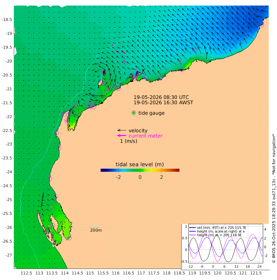 9cm/s -137T +12cm/s rms + 5cm/s -173T. NWSBAR 206m 15cm/s -138T +22cm/s rms + 10cm/s -148T. TAN100 109m 20cm/s -74T +11cm/s rms + 8cm/s -129T. PIL200 208m 35cm/s -56T +13cm/s rms + 7cm/s -137T. PIL100 105m 42cm/s -53T +12cm/s rms + 2cm/s -92T. PIL050 55m 16cm/s -133T +18cm/s rms + 4cm/s -149T. NRSNIN 61m 48cm/s -54T +6cm/s rms + 3cm/s 112T. NW Shelf M6 65m -13cm Withnell Point 25cm Denham 27cm Shark Bay (Inr Bn) 21cm Shark Bay 40cm Useless Loop 24cm Hamelin Pool -41cm Carnarvon -53cm Cape Cuvier -56cm Coral Bay -56cm Norwegian Bay -59cm Badjirrajirra -59cm Tantabiddi -56cm Point Murat -55cm Exmouth -62cm Learmonth -64cm Y Island -61cm North Muiron Island -71cm Roller -74cm Ashburton North -73cm Onslow (Beadon Creek) -76cm Thevenard Island -35cm Large Island -85cm North Sandy Island -85cm Barrow Island (Wapet Landing) -73cm Barrow Island (Tanker Mooring) -126cm Withnell Bay -83cm Trimouille Island -77cm North West Island -47cm Fortescue Road -116cm Steamboat Island -91cm Sholl Island -122cm Fairway Beacon -128cm Mawby Island -126cm Dampier (King Bay) -134cm Cape Legendre -115cm Hauy Island -141cm Port Walcott (Cape Lambert) -143cm Depuch Island -171cm Port Hedland -181cm Bedout Island -255cm Lagrange Bay
