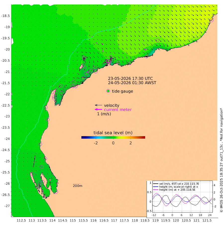 5cm/s 59T +12cm/s rms + 5cm/s -173T. NWSBAR 206m 6cm/s 41T +22cm/s rms + 10cm/s -148T. TAN100 109m 11cm/s 106T +11cm/s rms + 8cm/s -129T. PIL200 208m 17cm/s 125T +13cm/s rms + 7cm/s -137T. PIL100 105m 20cm/s 129T +12cm/s rms + 2cm/s -92T. PIL050 55m 5cm/s 51T +18cm/s rms + 4cm/s -149T. NRSNIN 61m 24cm/s 122T +6cm/s rms + 3cm/s 112T. NW Shelf M6 65m -17cm Withnell Point -30cm Denham -27cm Shark Bay (Inr Bn) -33cm Shark Bay -28cm Useless Loop 0cm Hamelin Pool -9cm Carnarvon 2cm Cape Cuvier 4cm Coral Bay 5cm Norwegian Bay -1cm Badjirrajirra 5cm Tantabiddi 0cm Point Murat -2cm Exmouth 5cm Learmonth 6cm Y Island 6cm North Muiron Island 8cm Roller 9cm Ashburton North 8cm Onslow (Beadon Creek) 8cm Thevenard Island 23cm Large Island 3cm North Sandy Island 9cm Barrow Island (Wapet Landing) 0cm Barrow Island (Tanker Mooring) 24cm Withnell Bay 14cm Trimouille Island 8cm North West Island 32cm Fortescue Road 19cm Steamboat Island 14cm Sholl Island 22cm Fairway Beacon 25cm Mawby Island 24cm Dampier (King Bay) 22cm Cape Legendre 18cm Hauy Island 27cm Port Walcott (Cape Lambert) 28cm Depuch Island 39cm Port Hedland 44cm Bedout Island 157cm Lagrange Bay