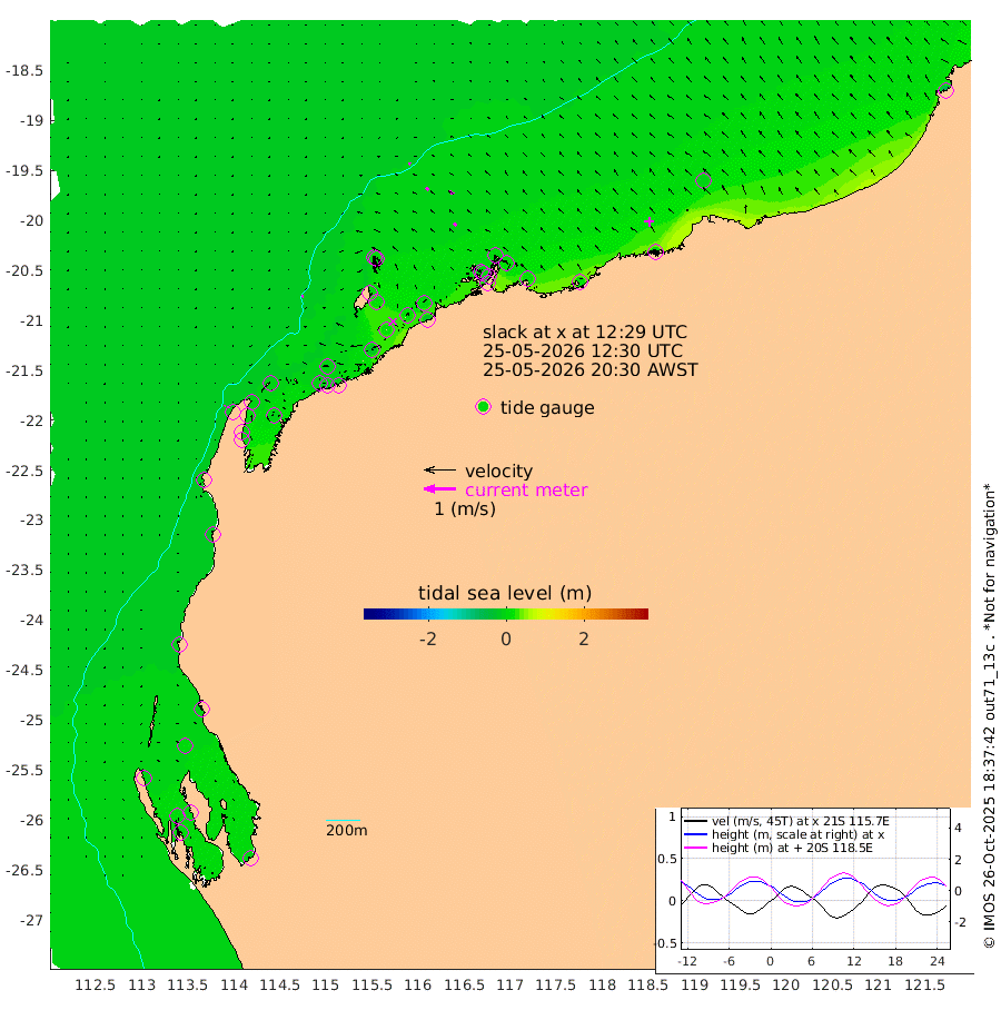 4cm/s -94T +12cm/s rms + 5cm/s -173T. NWSBAR 206m 5cm/s -143T +22cm/s rms + 10cm/s -148T. TAN100 109m 6cm/s -67T +11cm/s rms + 8cm/s -129T. PIL200 208m 10cm/s -48T +13cm/s rms + 7cm/s -137T. PIL100 105m 12cm/s -47T +12cm/s rms + 2cm/s -92T. PIL050 55m 4cm/s -132T +18cm/s rms + 4cm/s -149T. NRSNIN 61m 15cm/s -59T +6cm/s rms + 3cm/s 112T. NW Shelf M6 65m -1cm Withnell Point 2cm Denham 3cm Shark Bay (Inr Bn) 1cm Shark Bay 0cm Useless Loop -2cm Hamelin Pool -4cm Carnarvon -10cm Cape Cuvier -12cm Coral Bay -11cm Norwegian Bay 3cm Badjirrajirra -10cm Tantabiddi -3cm Point Murat 1cm Exmouth 9cm Learmonth -7cm Y Island -9cm North Muiron Island -7cm Roller -6cm Ashburton North -3cm Onslow (Beadon Creek) -5cm Thevenard Island -14cm Large Island 14cm North Sandy Island 3cm Barrow Island (Wapet Landing) 15cm Barrow Island (Tanker Mooring) 5cm Withnell Bay 5cm Trimouille Island 0cm North West Island -18cm Fortescue Road 1cm Steamboat Island 14cm Sholl Island 4cm Fairway Beacon 5cm Mawby Island 5cm Dampier (King Bay) 9cm Cape Legendre 15cm Hauy Island 12cm Port Walcott (Cape Lambert) 16cm Depuch Island 17cm Port Hedland -1cm Bedout Island -60cm Lagrange Bay