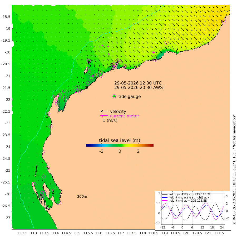 6cm/s 32T +12cm/s rms + 5cm/s -173T. NWSBAR 206m 5cm/s 53T +22cm/s rms + 10cm/s -148T. TAN100 109m 11cm/s 107T +11cm/s rms + 8cm/s -129T. PIL200 208m 19cm/s 125T +13cm/s rms + 7cm/s -137T. PIL100 105m 23cm/s 130T +12cm/s rms + 2cm/s -92T. PIL050 55m 5cm/s 49T +18cm/s rms + 4cm/s -149T. NRSNIN 61m 22cm/s 128T +6cm/s rms + 3cm/s 112T. NW Shelf M6 65m -23cm Withnell Point -39cm Denham -38cm Shark Bay (Inr Bn) -37cm Shark Bay -40cm Useless Loop -7cm Hamelin Pool -11cm Carnarvon -1cm Cape Cuvier 1cm Coral Bay 3cm Norwegian Bay 6cm Badjirrajirra 5cm Tantabiddi 3cm Point Murat 4cm Exmouth 10cm Learmonth 11cm Y Island 7cm North Muiron Island 14cm Roller 16cm Ashburton North 15cm Onslow (Beadon Creek) 17cm Thevenard Island 10cm Large Island 25cm North Sandy Island 24cm Barrow Island (Wapet Landing) 18cm Barrow Island (Tanker Mooring) 52cm Withnell Bay 21cm Trimouille Island 20cm North West Island 31cm Fortescue Road 40cm Steamboat Island 40cm Sholl Island 49cm Fairway Beacon 50cm Mawby Island 52cm Dampier (King Bay) 51cm Cape Legendre 54cm Hauy Island 64cm Port Walcott (Cape Lambert) 69cm Depuch Island 88cm Port Hedland 98cm Bedout Island 172cm Lagrange Bay