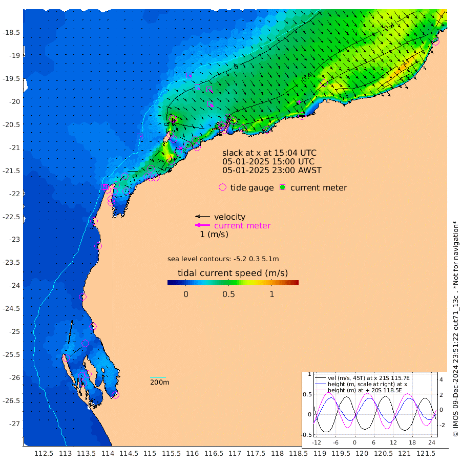 10cm/s 81T +12cm/s rms + 5cm/s -173T. NWSBAR 206m 9cm/s 40T +22cm/s rms + 10cm/s -148T. TAN100 109m 14cm/s 114T +11cm/s rms + 8cm/s -129T. PIL200 208m 24cm/s 132T +13cm/s rms + 7cm/s -137T. PIL100 105m 29cm/s 135T +12cm/s rms + 2cm/s -92T. PIL050 55m 8cm/s 48T +18cm/s rms + 4cm/s -149T. NRSNIN 61m 33cm/s 130T +6cm/s rms + 3cm/s 112T. NW Shelf M6 65m -4cm Withnell Point -9cm Denham -9cm Shark Bay (Inr Bn) -3cm Shark Bay -2cm Useless Loop 7cm Hamelin Pool -4cm Carnarvon 11cm Cape Cuvier 12cm Coral Bay 6cm Norwegian Bay -26cm Badjirrajirra 8cm Tantabiddi -10cm Point Murat -21cm Exmouth -31cm Learmonth -10cm Y Island 0cm North Muiron Island -3cm Roller -3cm Ashburton North -9cm Onslow (Beadon Creek) -4cm Thevenard Island -46cm Large Island -55cm North Sandy Island -23cm Barrow Island (Wapet Landing) -55cm Barrow Island (Tanker Mooring) -28cm Withnell Bay -31cm Trimouille Island -7cm North West Island -49cm Fortescue Road -30cm Steamboat Island -57cm Sholl Island -28cm Fairway Beacon -25cm Mawby Island -27cm Dampier (King Bay) -28cm Cape Legendre -49cm Hauy Island -46cm Port Walcott (Cape Lambert) -64cm Depuch Island -58cm Port Hedland -21cm Bedout Island 4cm Lagrange Bay