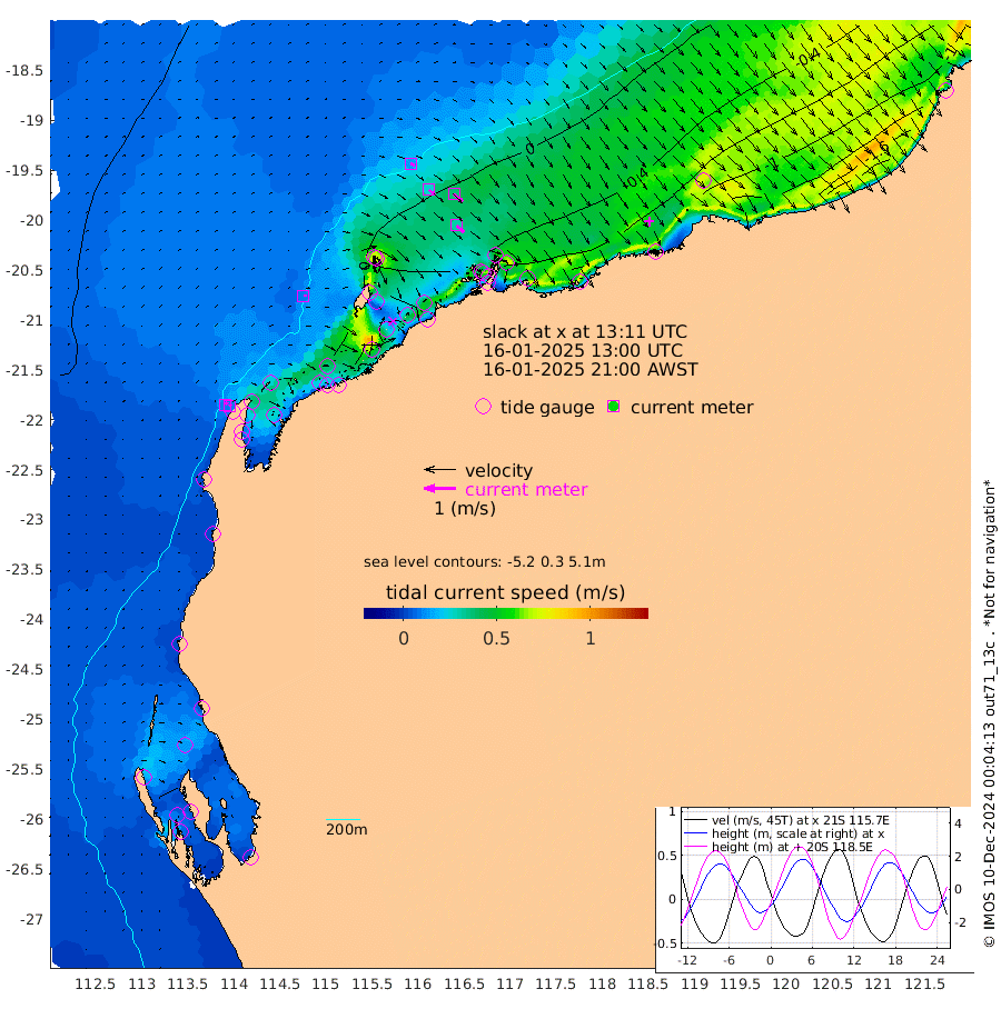 9cm/s 77T +12cm/s rms + 5cm/s -173T. NWSBAR 206m 9cm/s 40T +22cm/s rms + 10cm/s -148T. TAN100 109m 14cm/s 112T +11cm/s rms + 8cm/s -129T. PIL200 208m 25cm/s 131T +13cm/s rms + 7cm/s -137T. PIL100 105m 31cm/s 133T +12cm/s rms + 2cm/s -92T. PIL050 55m 10cm/s 46T +18cm/s rms + 4cm/s -149T. NRSNIN 61m 37cm/s 131T +6cm/s rms + 3cm/s 112T. NW Shelf M6 65m 11cm Withnell Point 4cm Denham 4cm Shark Bay (Inr Bn) 12cm Shark Bay 9cm Useless Loop 2cm Hamelin Pool 13cm Carnarvon 25cm Cape Cuvier 26cm Coral Bay 23cm Norwegian Bay -19cm Badjirrajirra 22cm Tantabiddi 0cm Point Murat -11cm Exmouth -27cm Learmonth 3cm Y Island 14cm North Muiron Island 12cm Roller 7cm Ashburton North 0cm Onslow (Beadon Creek) 7cm Thevenard Island -40cm Large Island -51cm North Sandy Island -17cm Barrow Island (Wapet Landing) -53cm Barrow Island (Tanker Mooring) -27cm Withnell Bay -23cm Trimouille Island -2cm North West Island -43cm Fortescue Road -30cm Steamboat Island -62cm Sholl Island -28cm Fairway Beacon -27cm Mawby Island -27cm Dampier (King Bay) -26cm Cape Legendre -50cm Hauy Island -51cm Port Walcott (Cape Lambert) -62cm Depuch Island -70cm Port Hedland -36cm Bedout Island 31cm Lagrange Bay