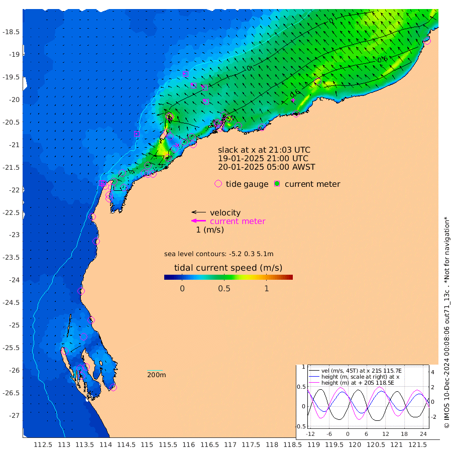 8cm/s -95T +12cm/s rms + 5cm/s -173T. NWSBAR 206m 10cm/s -142T +22cm/s rms + 10cm/s -148T. TAN100 109m 13cm/s -70T +11cm/s rms + 8cm/s -129T. PIL200 208m 23cm/s -52T +13cm/s rms + 7cm/s -137T. PIL100 105m 28cm/s -48T +12cm/s rms + 2cm/s -92T. PIL050 55m 10cm/s -134T +18cm/s rms + 4cm/s -149T. NRSNIN 61m 33cm/s -57T +6cm/s rms + 3cm/s 112T. NW Shelf M6 65m 0cm Withnell Point 8cm Denham 8cm Shark Bay (Inr Bn) 8cm Shark Bay 5cm Useless Loop -2cm Hamelin Pool -4cm Carnarvon -16cm Cape Cuvier -17cm Coral Bay -14cm Norwegian Bay 17cm Badjirrajirra -14cm Tantabiddi 4cm Point Murat 13cm Exmouth 20cm Learmonth 1cm Y Island -9cm North Muiron Island -7cm Roller -5cm Ashburton North 0cm Onslow (Beadon Creek) -3cm Thevenard Island 30cm Large Island 39cm North Sandy Island 13cm Barrow Island (Wapet Landing) 42cm Barrow Island (Tanker Mooring) 12cm Withnell Bay 17cm Trimouille Island 1cm North West Island 28cm Fortescue Road 11cm Steamboat Island 50cm Sholl Island 13cm Fairway Beacon 9cm Mawby Island 13cm Dampier (King Bay) 9cm Cape Legendre 31cm Hauy Island 28cm Port Walcott (Cape Lambert) 25cm Depuch Island 35cm Port Hedland 13cm Bedout Island -64cm Lagrange Bay