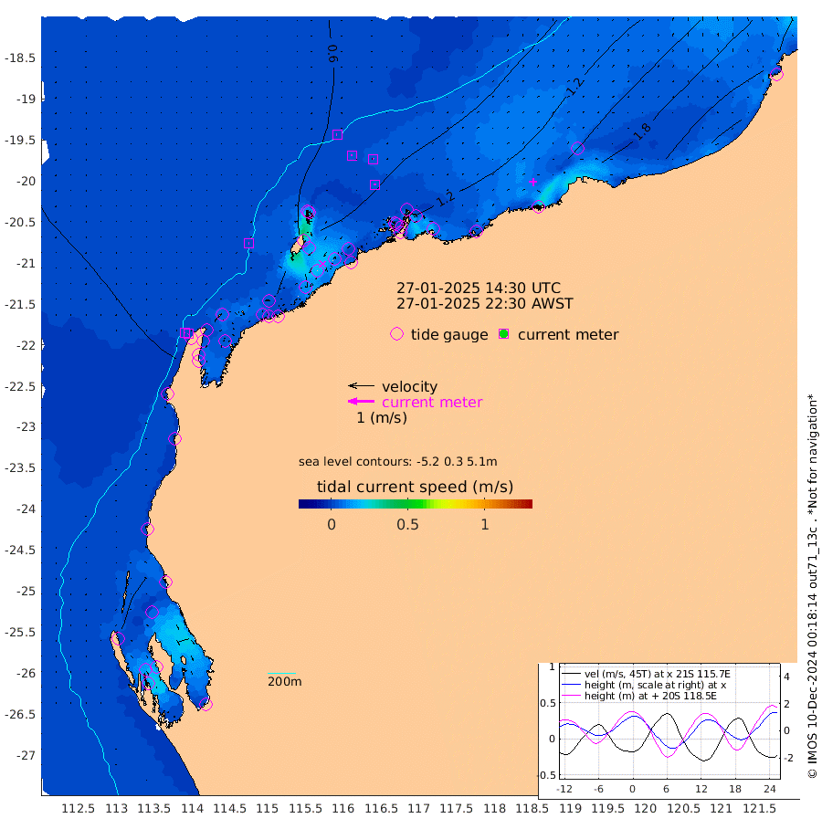 2cm/s -85T +12cm/s rms + 5cm/s -173T. NWSBAR 206m 1cm/s -124T +22cm/s rms + 10cm/s -148T. TAN100 109m 2cm/s -75T +11cm/s rms + 8cm/s -129T. PIL200 208m 4cm/s -27T +13cm/s rms + 7cm/s -137T. PIL100 105m 5cm/s 1T +12cm/s rms + 2cm/s -92T. PIL050 55m 1cm/s -119T +18cm/s rms + 4cm/s -149T. NRSNIN 61m 5cm/s 10T +6cm/s rms + 3cm/s 112T. NW Shelf M6 65m 38cm Withnell Point 47cm Denham 46cm Shark Bay (Inr Bn) 49cm Shark Bay 47cm Useless Loop 2cm Hamelin Pool 39cm Carnarvon 25cm Cape Cuvier 28cm Coral Bay 28cm Norwegian Bay 62cm Badjirrajirra 33cm Tantabiddi 48cm Point Murat 57cm Exmouth 59cm Learmonth 55cm Y Island 43cm North Muiron Island 48cm Roller 51cm Ashburton North 55cm Onslow (Beadon Creek) 53cm Thevenard Island 107cm Large Island 89cm North Sandy Island 71cm Barrow Island (Wapet Landing) 93cm Barrow Island (Tanker Mooring) 92cm Withnell Bay 65cm Trimouille Island 59cm North West Island 125cm Fortescue Road 85cm Steamboat Island 70cm Sholl Island 90cm Fairway Beacon 88cm Mawby Island 93cm Dampier (King Bay) 89cm Cape Legendre 99cm Hauy Island 113cm Port Walcott (Cape Lambert) 133cm Depuch Island 137cm Port Hedland 139cm Bedout Island 269cm Lagrange Bay