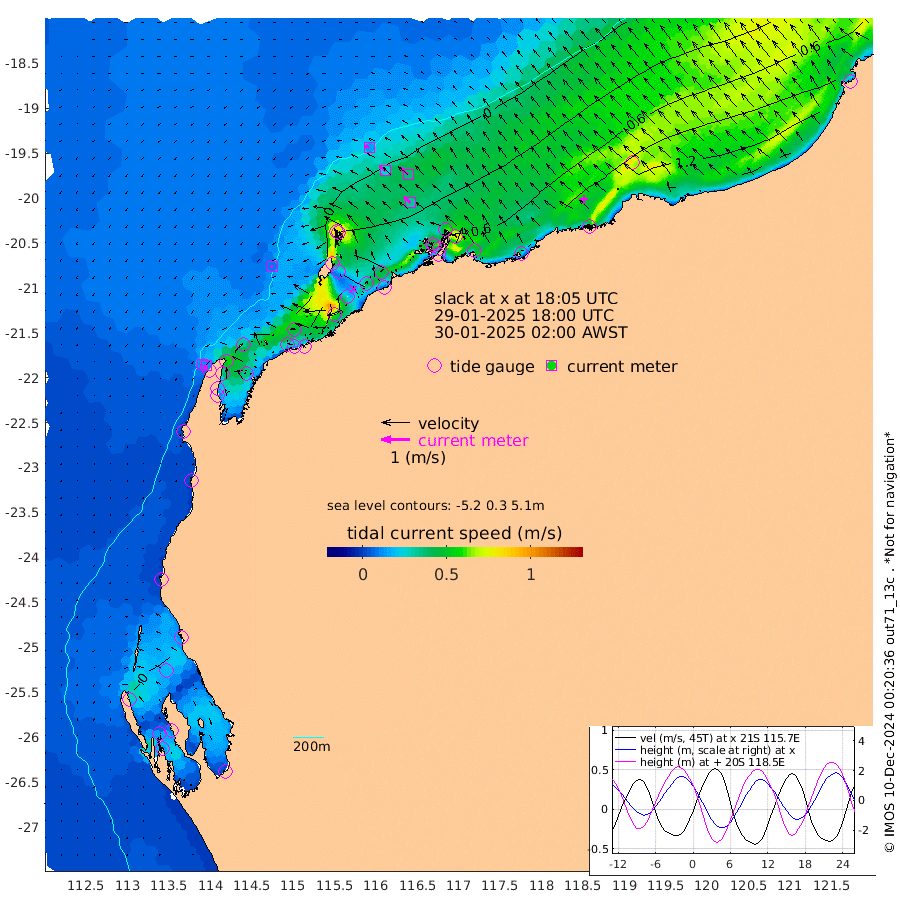 8cm/s -113T +12cm/s rms + 5cm/s -173T. NWSBAR 206m 11cm/s -137T +22cm/s rms + 10cm/s -148T. TAN100 109m 15cm/s -72T +11cm/s rms + 8cm/s -129T. PIL200 208m 27cm/s -52T +13cm/s rms + 7cm/s -137T. PIL100 105m 32cm/s -47T +12cm/s rms + 2cm/s -92T. PIL050 55m 12cm/s -133T +18cm/s rms + 4cm/s -149T. NRSNIN 61m 38cm/s -50T +6cm/s rms + 3cm/s 112T. NW Shelf M6 65m 14cm Withnell Point 38cm Denham 38cm Shark Bay (Inr Bn) 36cm Shark Bay 40cm Useless Loop 10cm Hamelin Pool 2cm Carnarvon -15cm Cape Cuvier -15cm Coral Bay -15cm Norwegian Bay 27cm Badjirrajirra -10cm Tantabiddi 11cm Point Murat 22cm Exmouth 29cm Learmonth 11cm Y Island -1cm North Muiron Island 1cm Roller 2cm Ashburton North 9cm Onslow (Beadon Creek) 4cm Thevenard Island 67cm Large Island 55cm North Sandy Island 23cm Barrow Island (Wapet Landing) 60cm Barrow Island (Tanker Mooring) 27cm Withnell Bay 25cm Trimouille Island 14cm North West Island 66cm Fortescue Road 32cm Steamboat Island 52cm Sholl Island 27cm Fairway Beacon 23cm Mawby Island 27cm Dampier (King Bay) 14cm Cape Legendre 45cm Hauy Island 48cm Port Walcott (Cape Lambert) 66cm Depuch Island 61cm Port Hedland 46cm Bedout Island 15cm Lagrange Bay