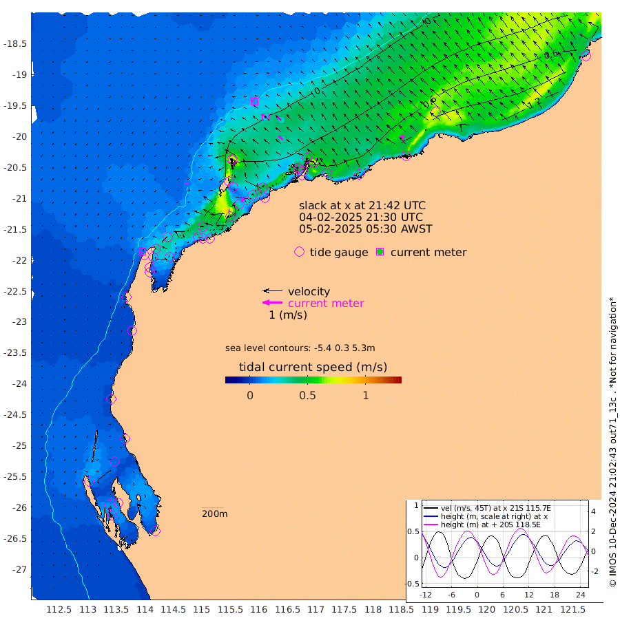 10cm/s -91T +12cm/s rms + 5cm/s -173T. NWSBAR 206m 9cm/s -142T +22cm/s rms + 10cm/s -148T. TAN100 109m 14cm/s -69T +11cm/s rms + 8cm/s -129T. PIL200 208m 24cm/s -51T +13cm/s rms + 7cm/s -137T. PIL100 105m 30cm/s -48T +12cm/s rms + 2cm/s -92T. PIL050 55m 8cm/s -132T +18cm/s rms + 4cm/s -149T. NRSNIN 61m 29cm/s -52T +6cm/s rms + 3cm/s 112T. NW Shelf M6 65m 1cm Withnell Point 0cm Denham -3cm Shark Bay (Inr Bn) -1cm Shark Bay -10cm Useless Loop -11cm Hamelin Pool 1cm Carnarvon -12cm Cape Cuvier -15cm Coral Bay -10cm Norwegian Bay 24cm Badjirrajirra -11cm Tantabiddi 8cm Point Murat 18cm Exmouth 25cm Learmonth 6cm Y Island -5cm North Muiron Island 1cm Roller -1cm Ashburton North 5cm Onslow (Beadon Creek) 1cm Thevenard Island 26cm Large Island 50cm North Sandy Island 18cm Barrow Island (Wapet Landing) 52cm Barrow Island (Tanker Mooring) 19cm Withnell Bay 18cm Trimouille Island 5cm North West Island 30cm Fortescue Road 22cm Steamboat Island 55cm Sholl Island 22cm Fairway Beacon 20cm Mawby Island 20cm Dampier (King Bay) 21cm Cape Legendre 43cm Hauy Island 37cm Port Walcott (Cape Lambert) 41cm Depuch Island 45cm Port Hedland 11cm Bedout Island -23cm Lagrange Bay