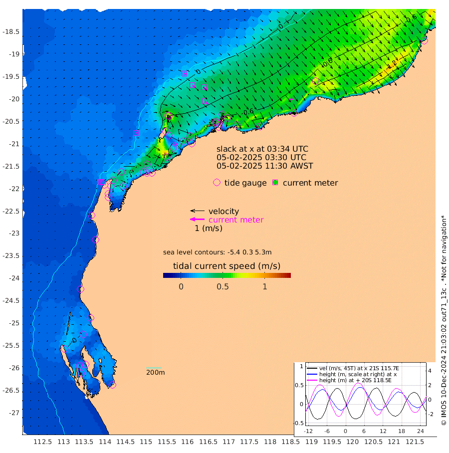 8cm/s 84T +12cm/s rms + 5cm/s -173T. NWSBAR 206m 10cm/s 39T +22cm/s rms + 10cm/s -148T. TAN100 109m 15cm/s 110T +11cm/s rms + 8cm/s -129T. PIL200 208m 27cm/s 128T +13cm/s rms + 7cm/s -137T. PIL100 105m 32cm/s 132T +12cm/s rms + 2cm/s -92T. PIL050 55m 10cm/s 49T +18cm/s rms + 4cm/s -149T. NRSNIN 61m 31cm/s 128T +6cm/s rms + 3cm/s 112T. NW Shelf M6 65m -2cm Withnell Point -16cm Denham -12cm Shark Bay (Inr Bn) -16cm Shark Bay -14cm Useless Loop -2cm Hamelin Pool 0cm Carnarvon 17cm Cape Cuvier 18cm Coral Bay 13cm Norwegian Bay -27cm Badjirrajirra 13cm Tantabiddi -9cm Point Murat -20cm Exmouth -21cm Learmonth -10cm Y Island 5cm North Muiron Island 1cm Roller 0cm Ashburton North -7cm Onslow (Beadon Creek) -2cm Thevenard Island -20cm Large Island -51cm North Sandy Island -21cm Barrow Island (Wapet Landing) -57cm Barrow Island (Tanker Mooring) -24cm Withnell Bay -18cm Trimouille Island -3cm North West Island -34cm Fortescue Road -27cm Steamboat Island -56cm Sholl Island -26cm Fairway Beacon -22cm Mawby Island -25cm Dampier (King Bay) -24cm Cape Legendre -47cm Hauy Island -45cm Port Walcott (Cape Lambert) -47cm Depuch Island -56cm Port Hedland -44cm Bedout Island 17cm Lagrange Bay