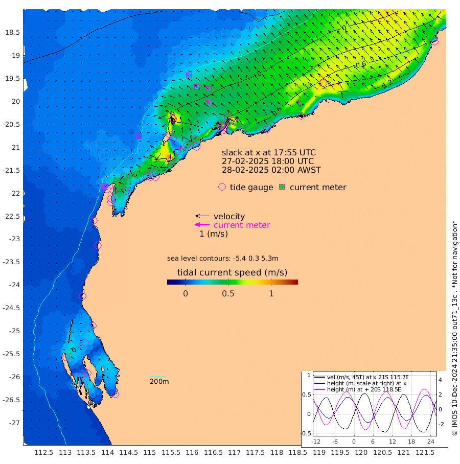 10cm/s -113T +12cm/s rms + 5cm/s -173T. NWSBAR 206m 11cm/s -137T +22cm/s rms + 10cm/s -148T. TAN100 109m 17cm/s -70T +11cm/s rms + 8cm/s -129T. PIL200 208m 29cm/s -52T +13cm/s rms + 7cm/s -137T. PIL100 105m 35cm/s -48T +12cm/s rms + 2cm/s -92T. PIL050 55m 12cm/s -133T +18cm/s rms + 4cm/s -149T. NRSNIN 61m 36cm/s -52T +6cm/s rms + 3cm/s 112T. NW Shelf M6 65m 11cm Withnell Point 31cm Denham 30cm Shark Bay (Inr Bn) 28cm Shark Bay 31cm Useless Loop 6cm Hamelin Pool -1cm Carnarvon -18cm Cape Cuvier -18cm Coral Bay -18cm Norwegian Bay 21cm Badjirrajirra -14cm Tantabiddi 6cm Point Murat 16cm Exmouth 25cm Learmonth 4cm Y Island -6cm North Muiron Island -3cm Roller -4cm Ashburton North 2cm Onslow (Beadon Creek) -3cm Thevenard Island 45cm Large Island 48cm North Sandy Island 15cm Barrow Island (Wapet Landing) 52cm Barrow Island (Tanker Mooring) 14cm Withnell Bay 19cm Trimouille Island 7cm North West Island 39cm Fortescue Road 24cm Steamboat Island 45cm Sholl Island 15cm Fairway Beacon 12cm Mawby Island 14cm Dampier (King Bay) 2cm Cape Legendre 34cm Hauy Island 33cm Port Walcott (Cape Lambert) 53cm Depuch Island 42cm Port Hedland 18cm Bedout Island -35cm Lagrange Bay